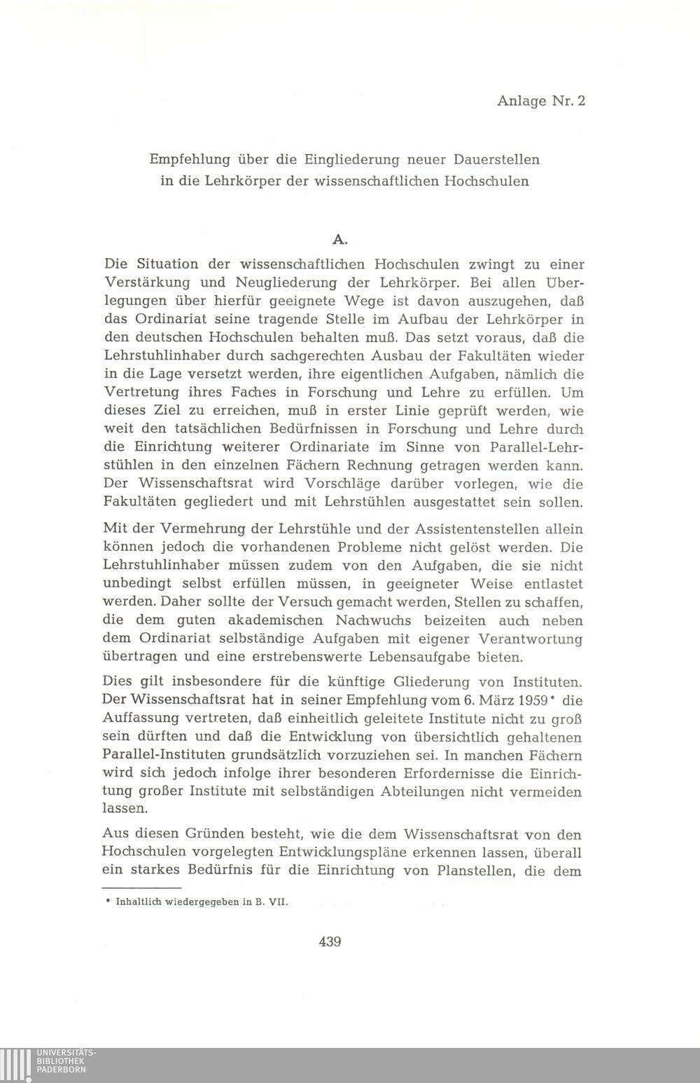 2. Empfehlung über die Eingliederung neuer Dauerstellen in die Lehrkörper der wissenschaftlichen[...]