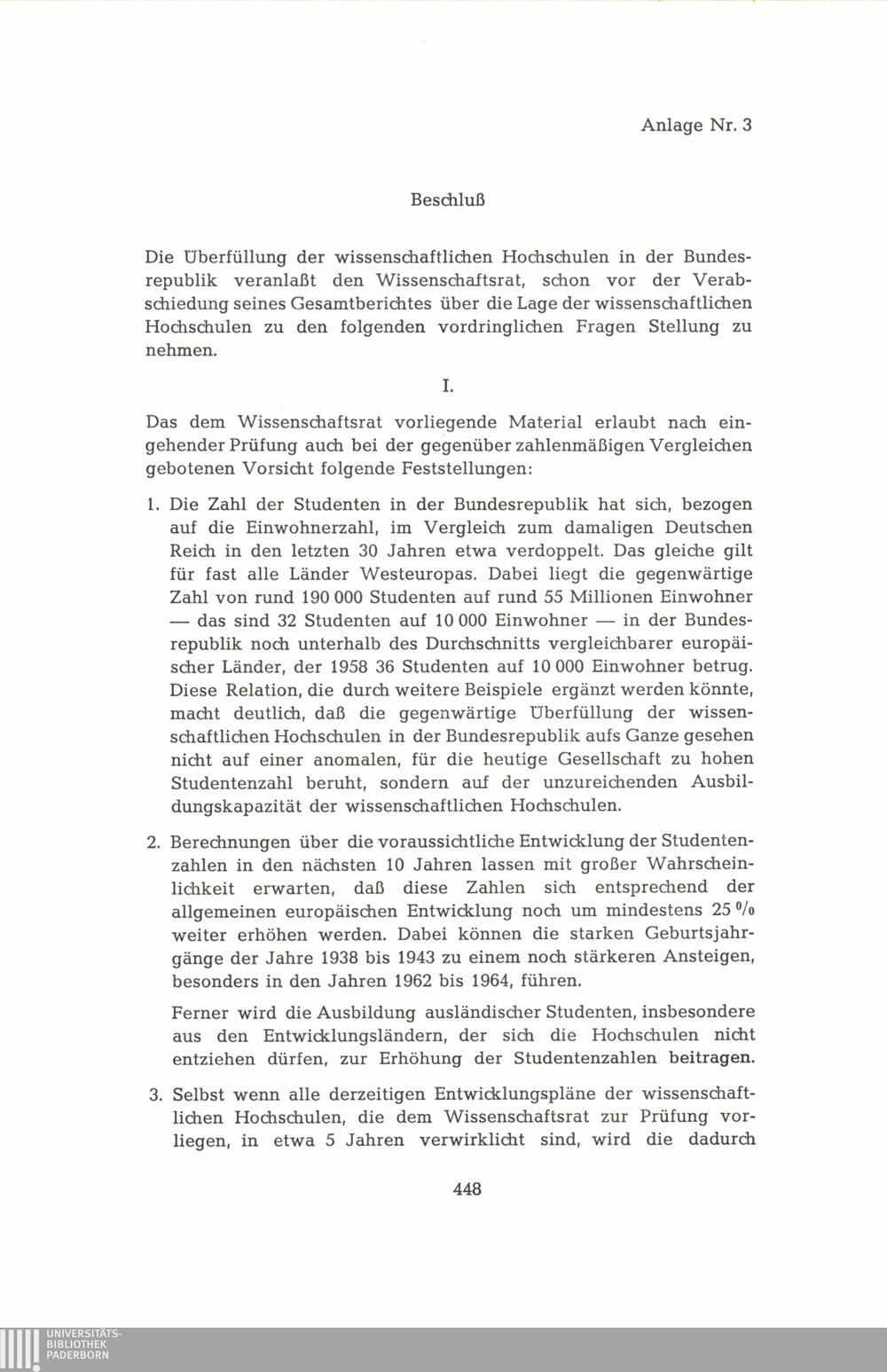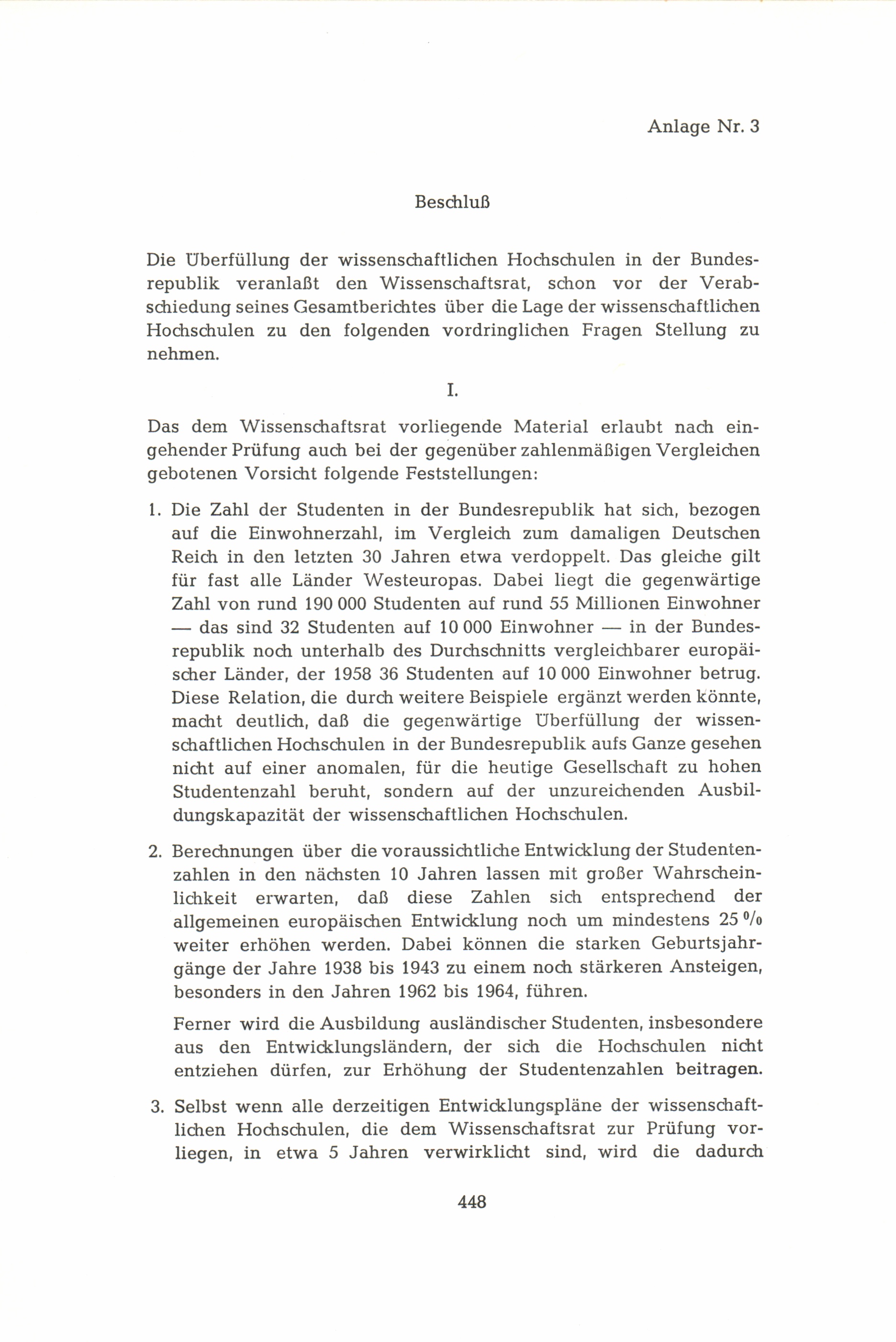 3. Beschluß betr. Überfüllung der wissenschaftlichen Hochschulen