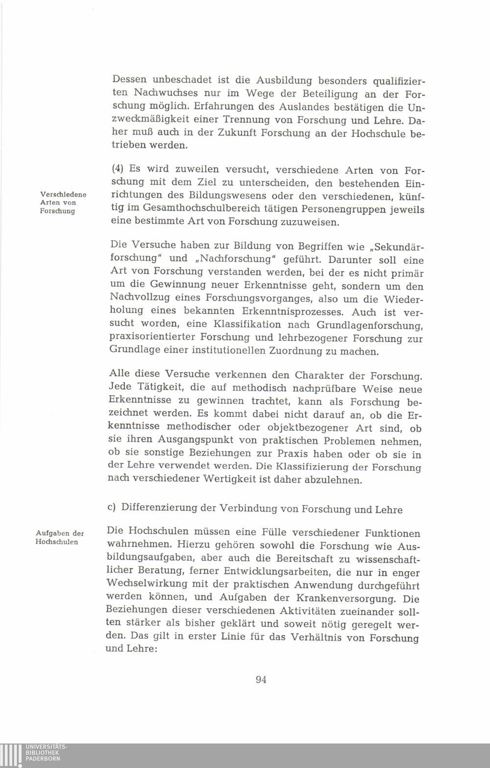 c) Differenzierung der Verbindung von Forschung und Lehre