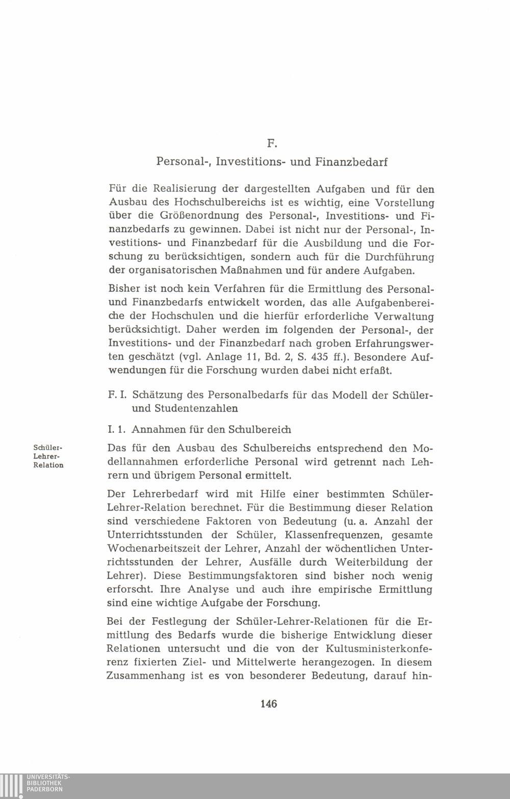 I. Schätzung des Personalbedarfs für das Modell der Schüler- und Studentenzahlen