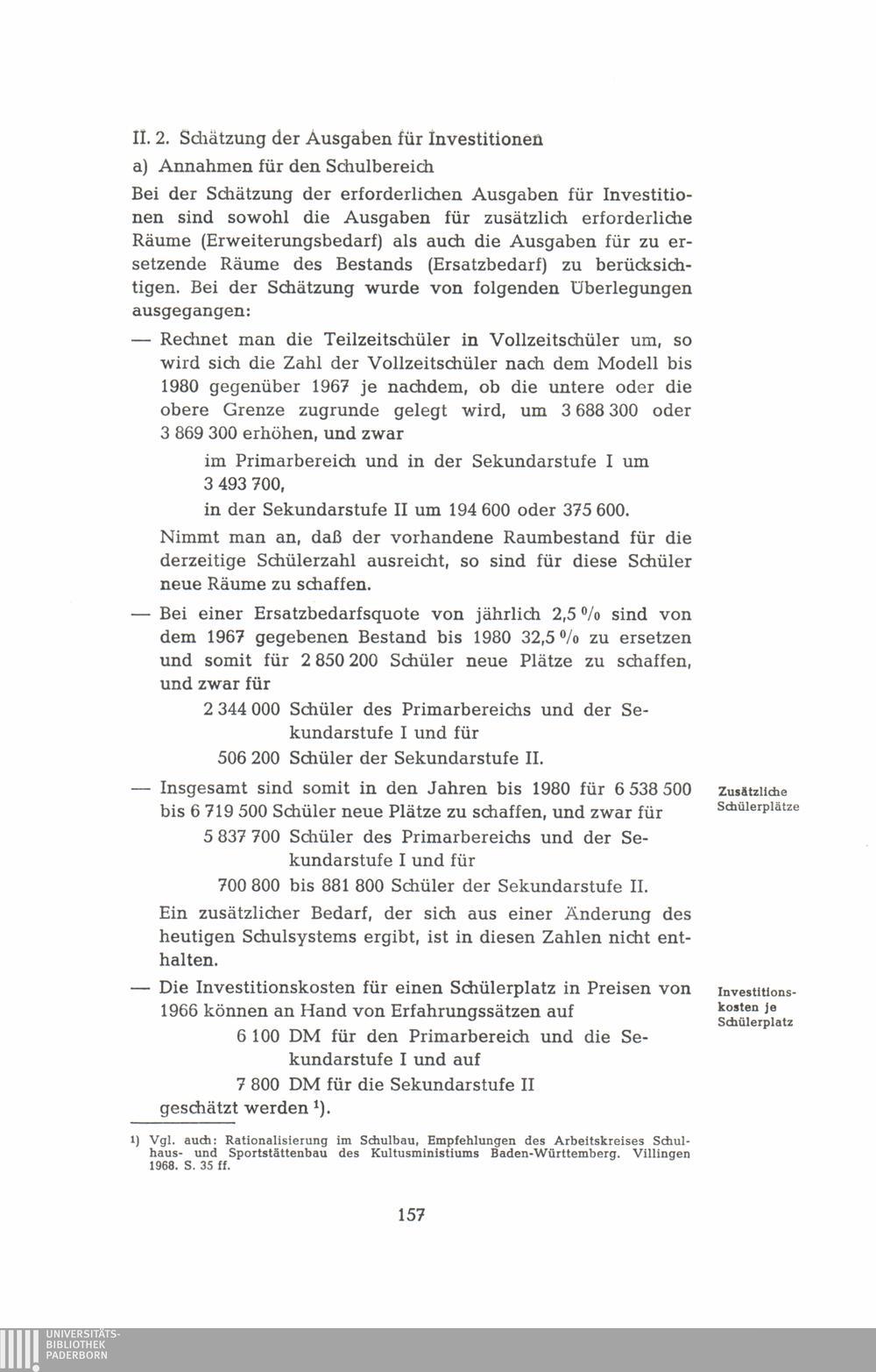 II. Schätzung des Finanzbedarfs für das Modell der Schüler- und Studentenzahlen