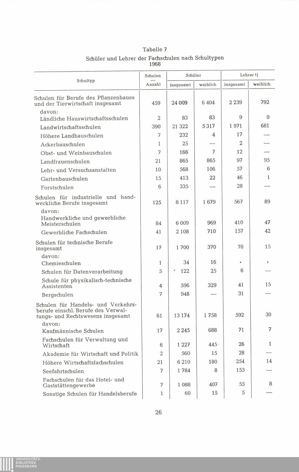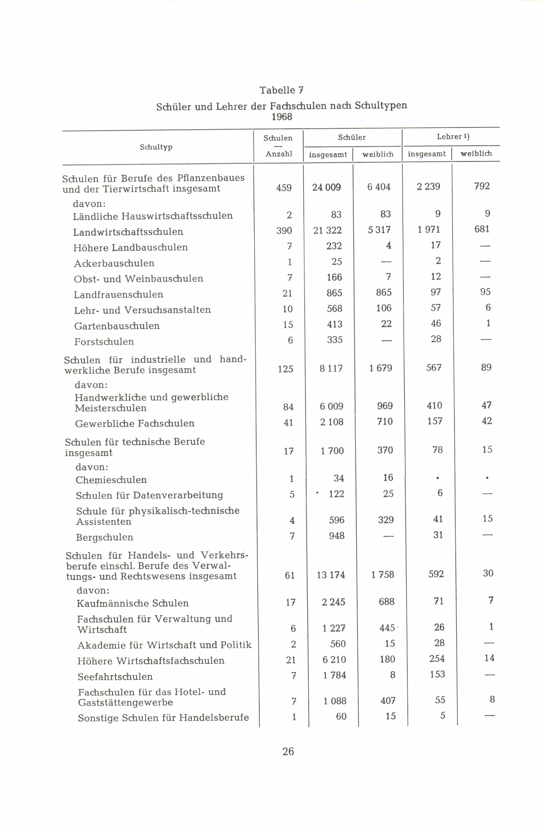 7. Schüler und Lehrer der Fachschulen nach Schultypen 1968