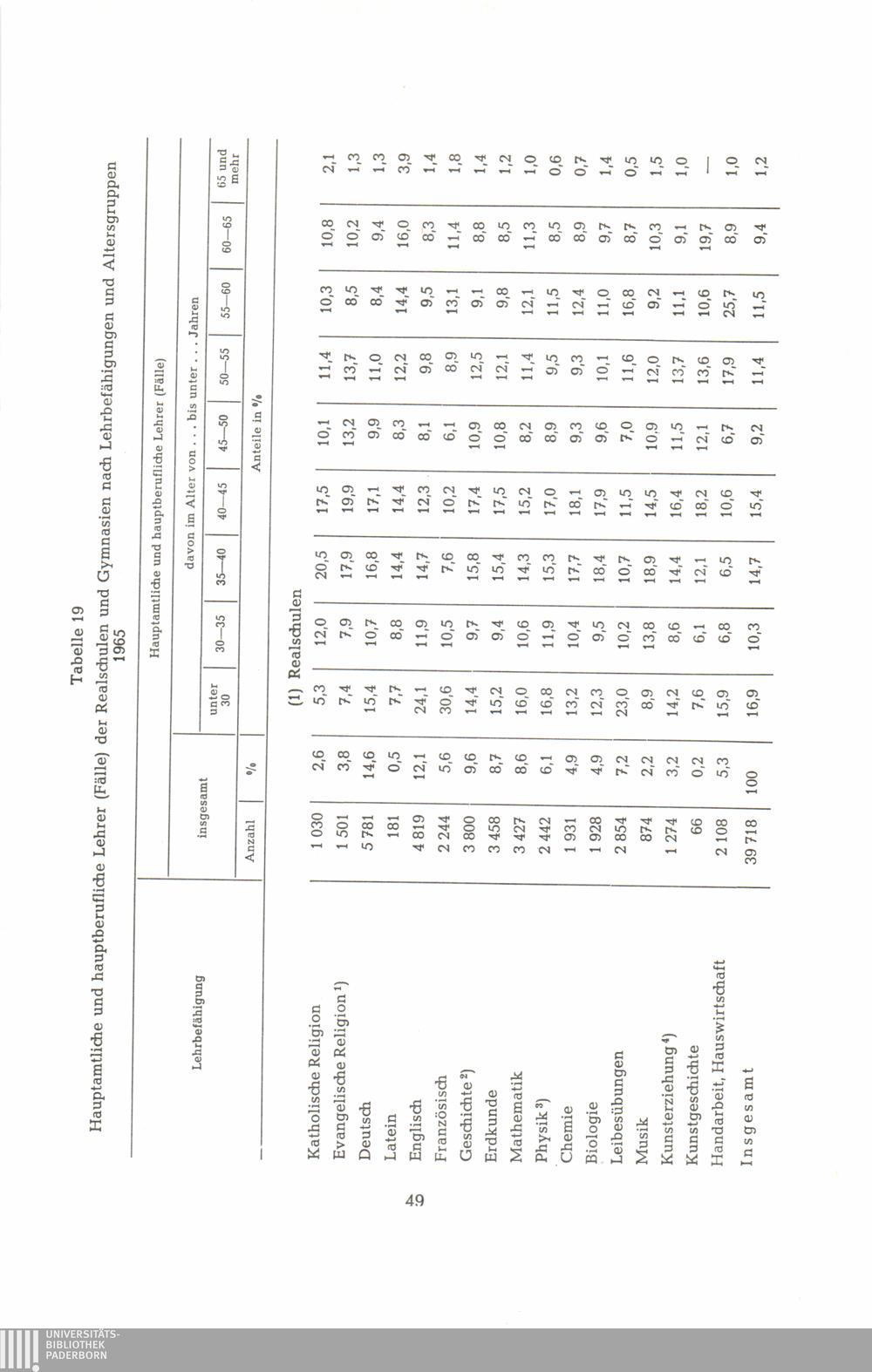 19. Hauptamtliche und hauptberufliche Lehrer (Fälle) der Realschulen und Gymnasien[...]