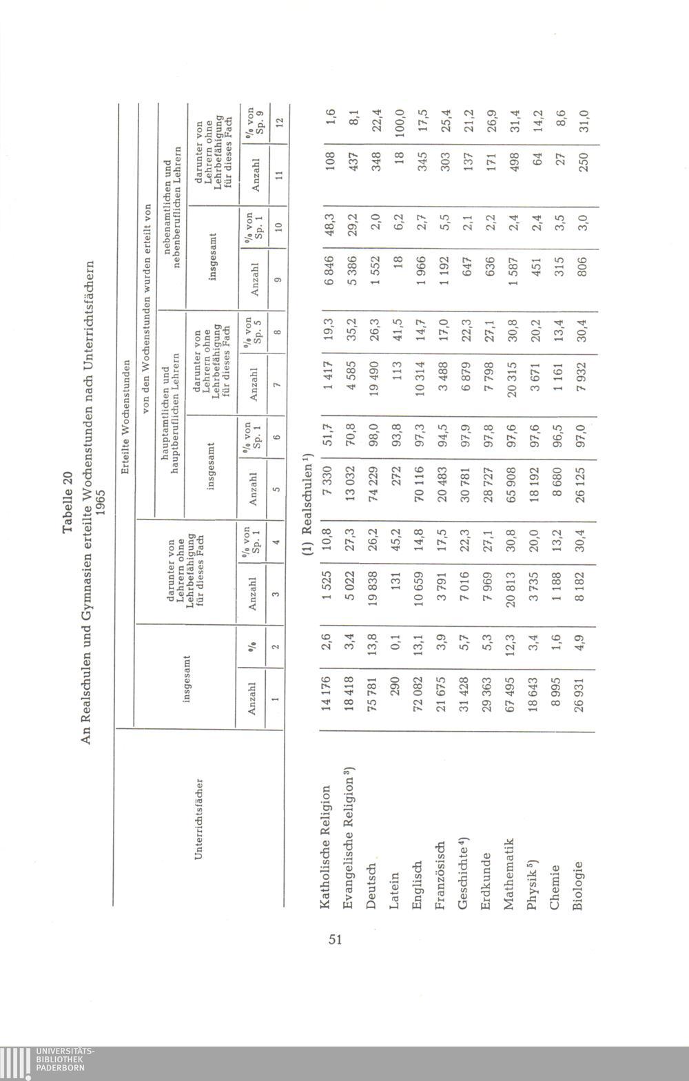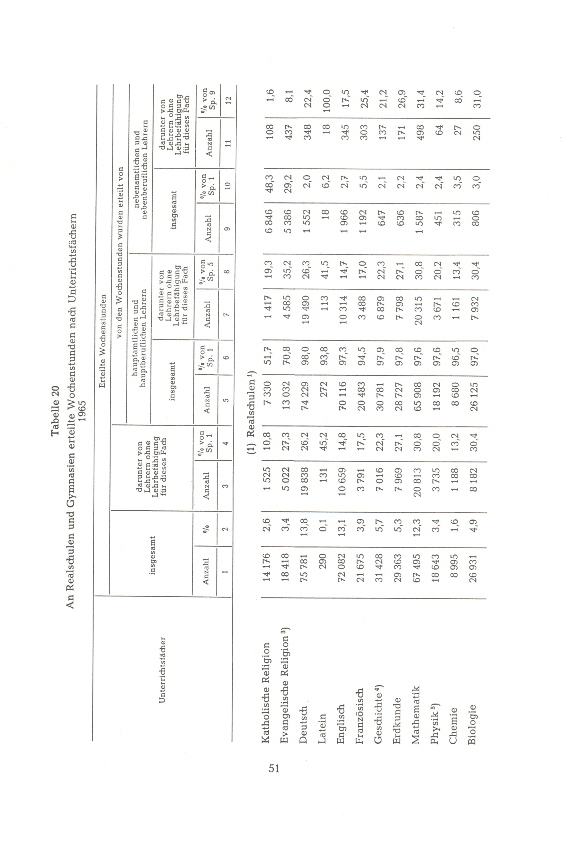 20. An Realschulen und Gymnasien erteilte Wochenstunden nach Unterrichtsfächern [...]