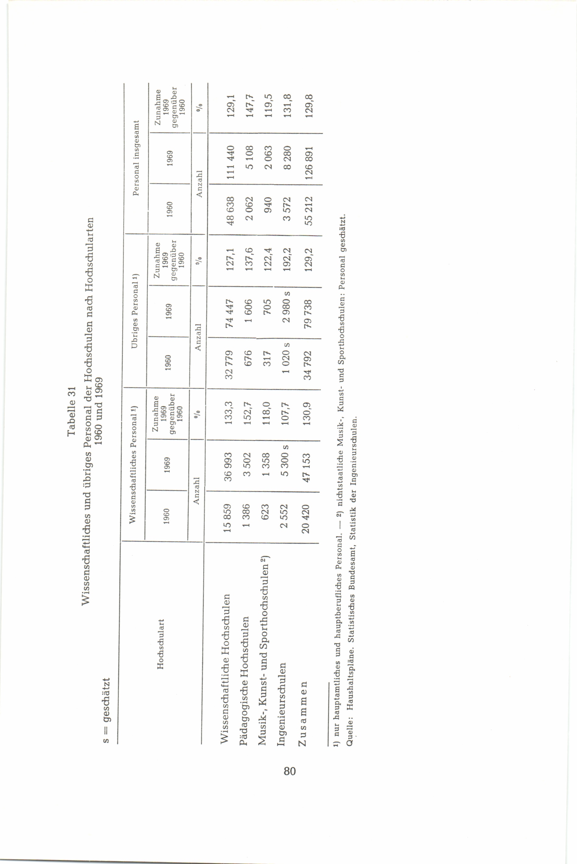 31. Wissenschaftliches und übriges Personal der Hochschulen nach Hochschularten 1960[...]