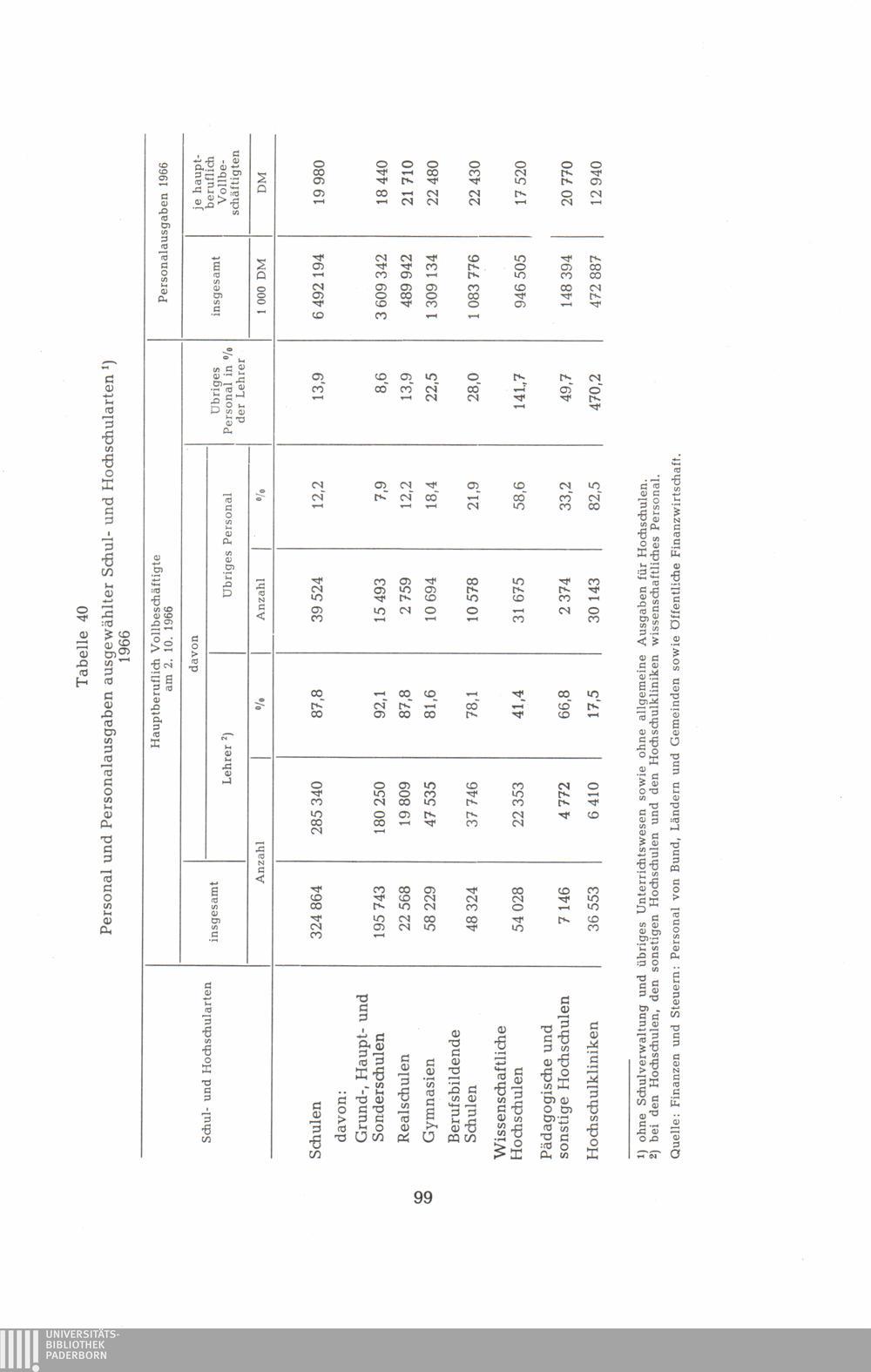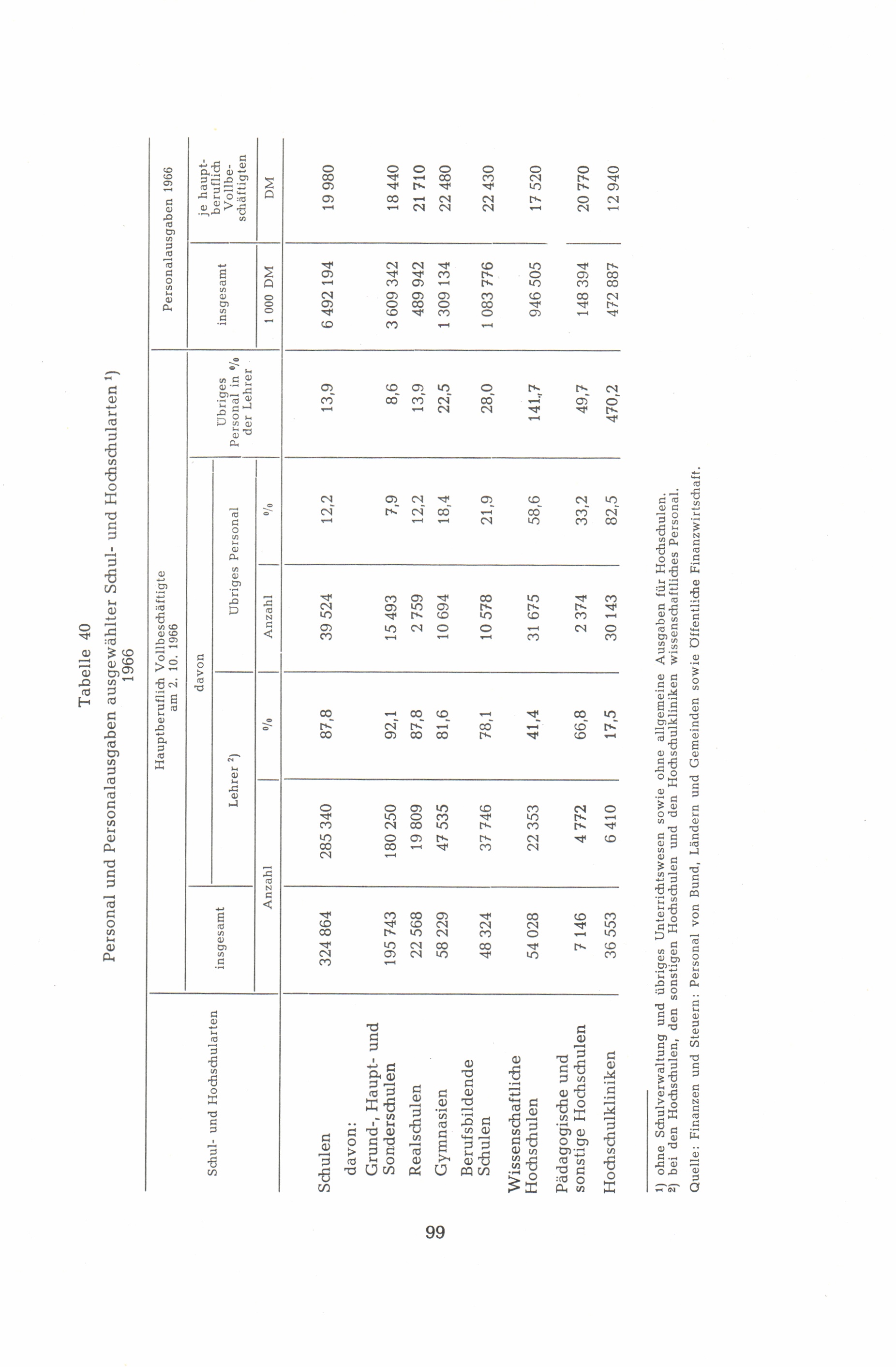40. Personal nach Personalausgaben ausgewählter Schul- und Hochschularten 1966