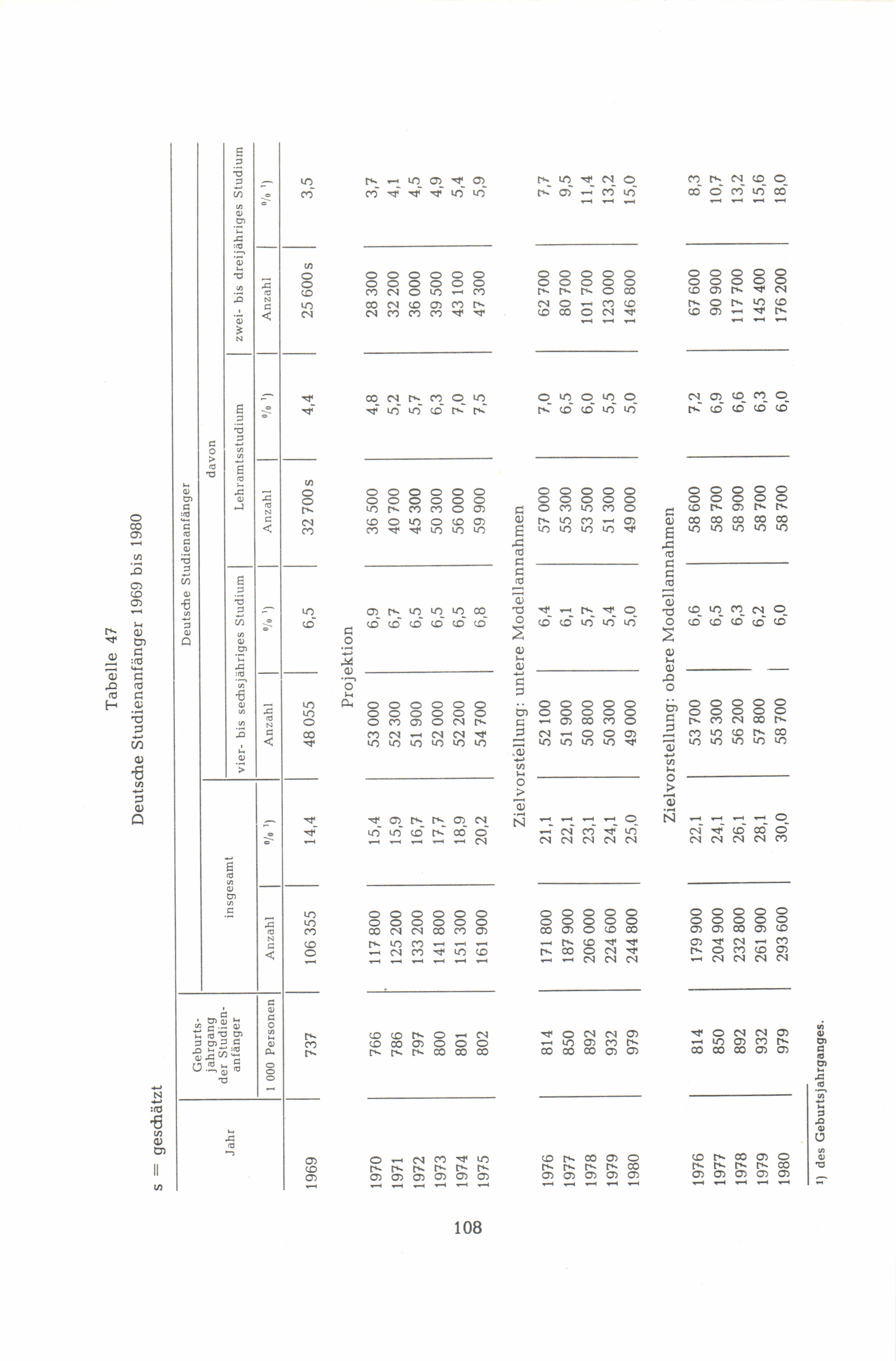 Schülerzahlen um 1980 nach Modell sowie Studienanfänger- und Studentenzahlen, Personalbedarf[...]
