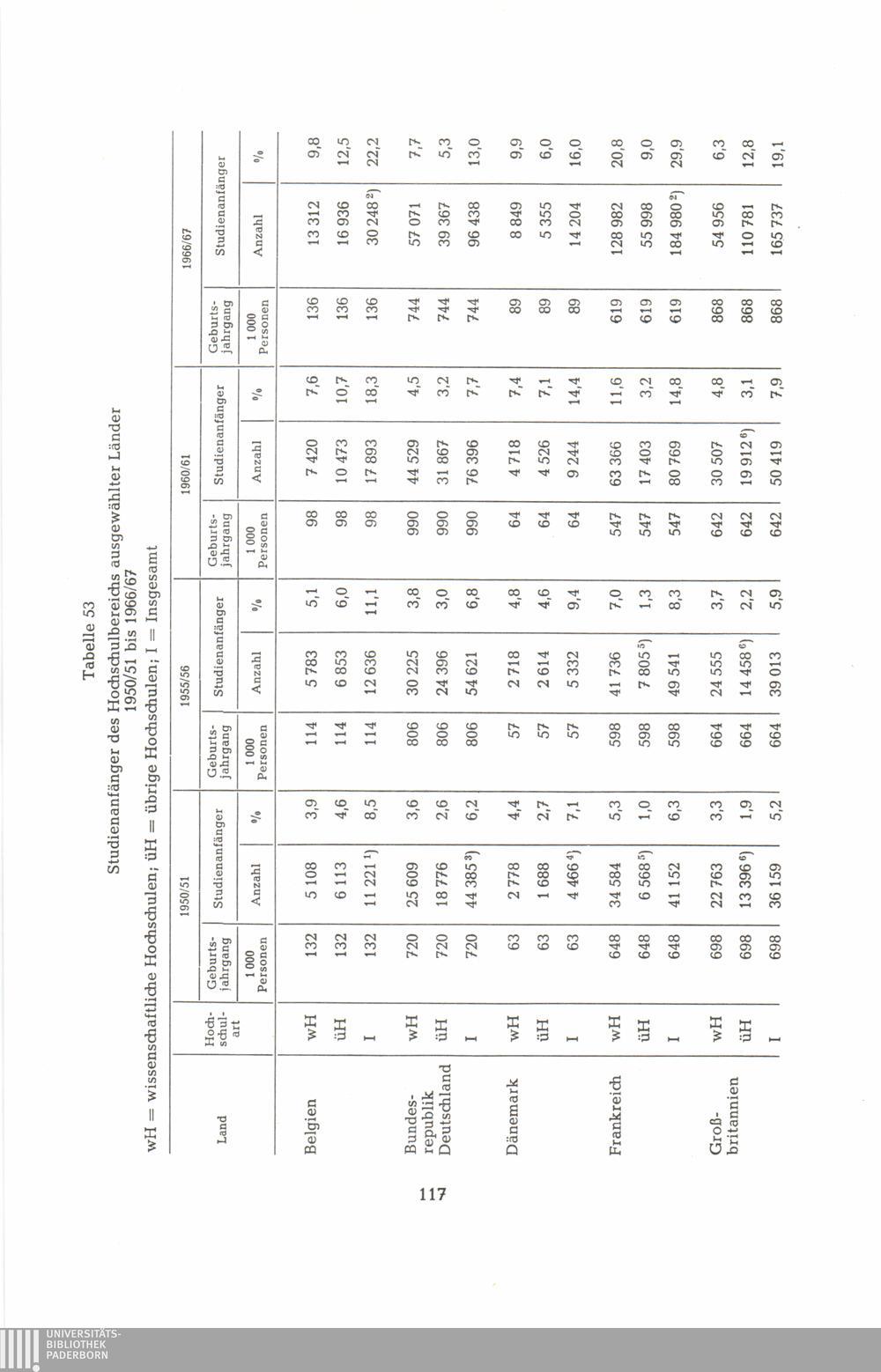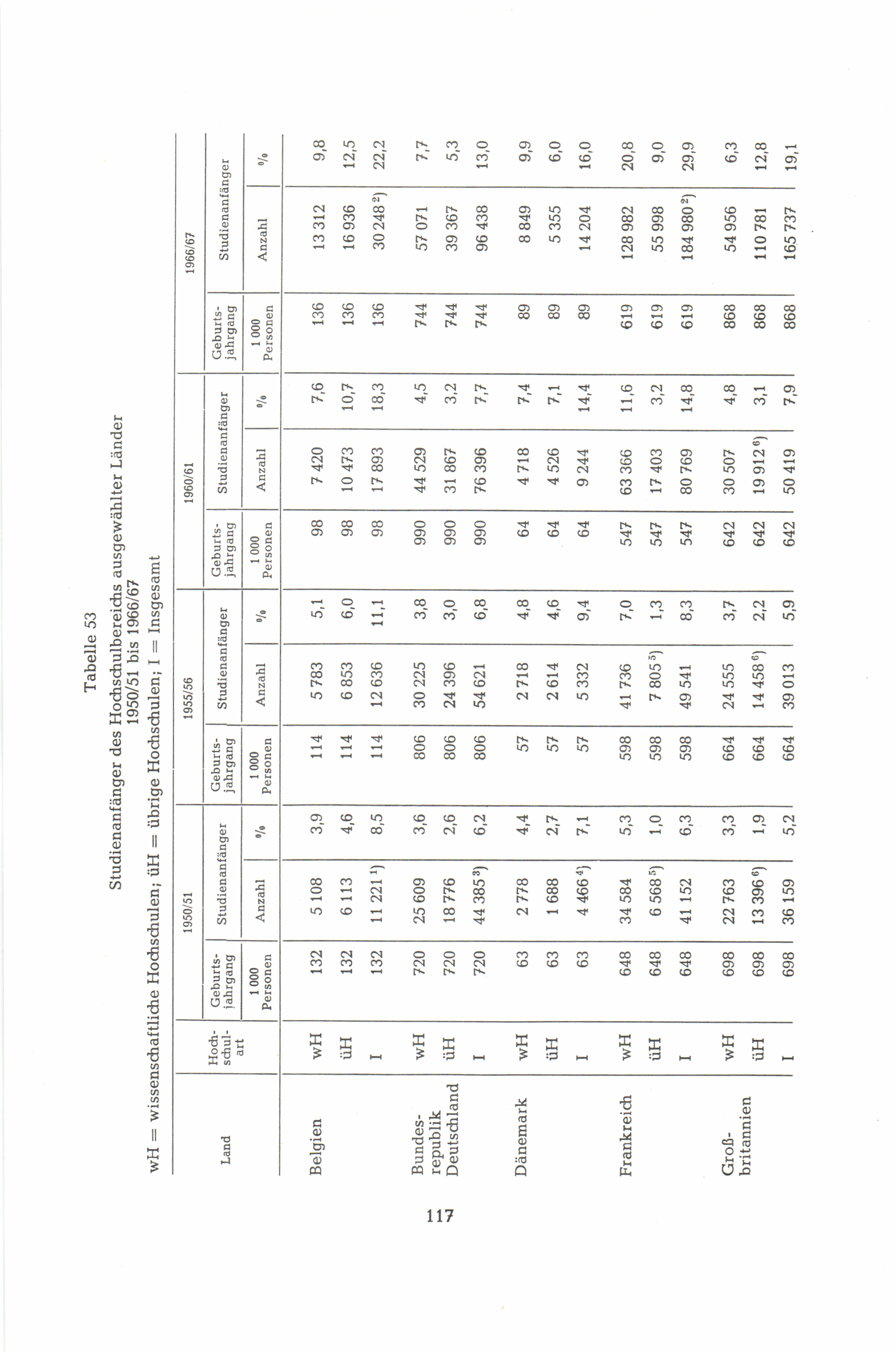 53. Studienanfänger des Hochschulbereichs ausgewählter Länder 1950/51 bis 1966/6[...]