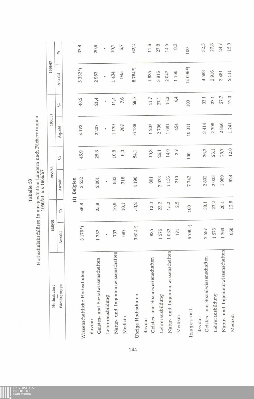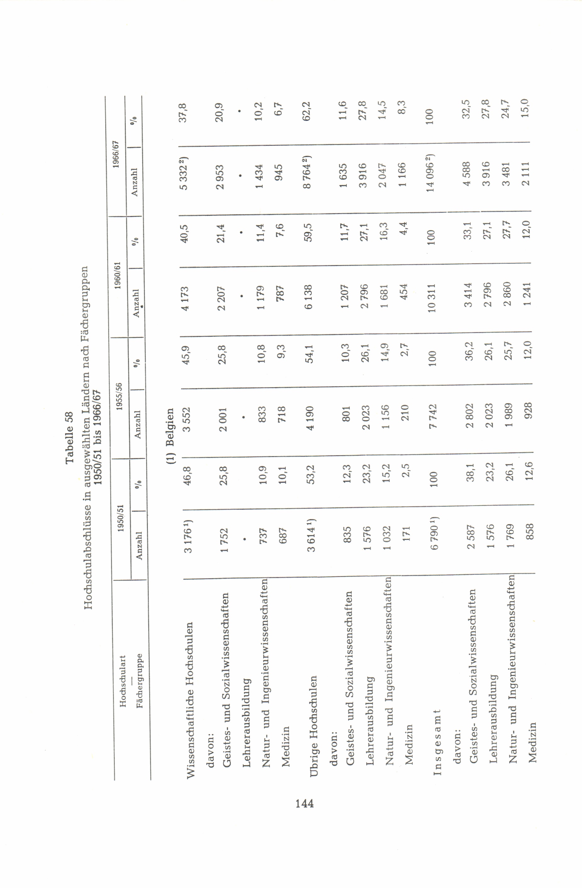 58. Hochschulabschlüsse in ausgewählten Ländern nach Fächergruppen 1950/51 bis 1[...]