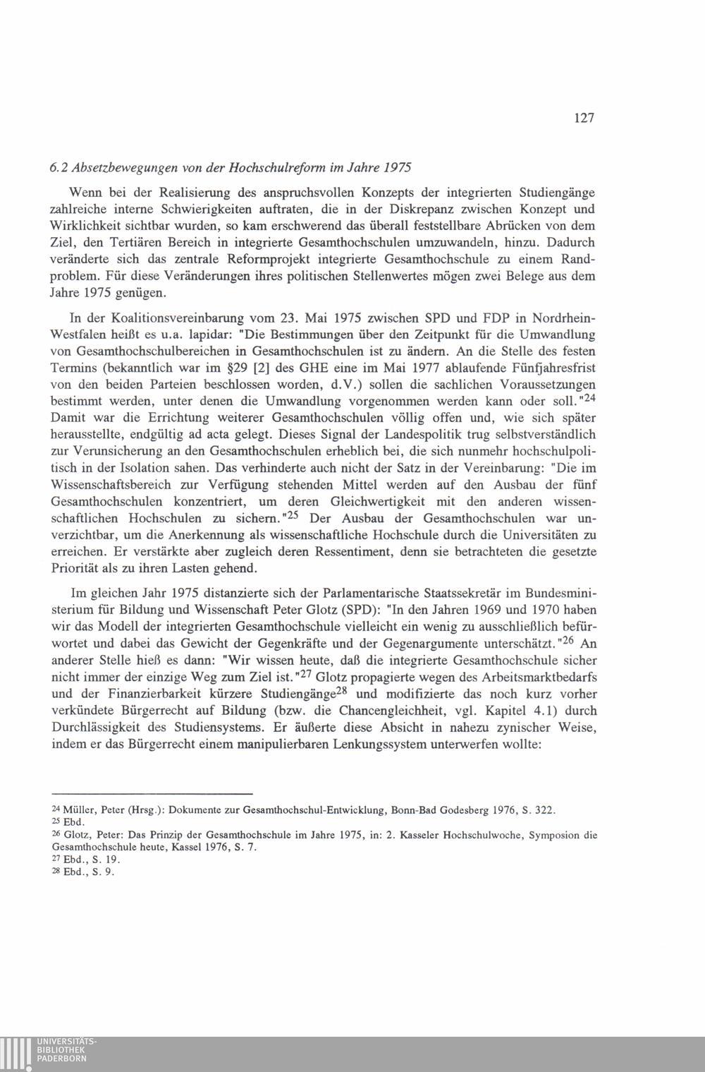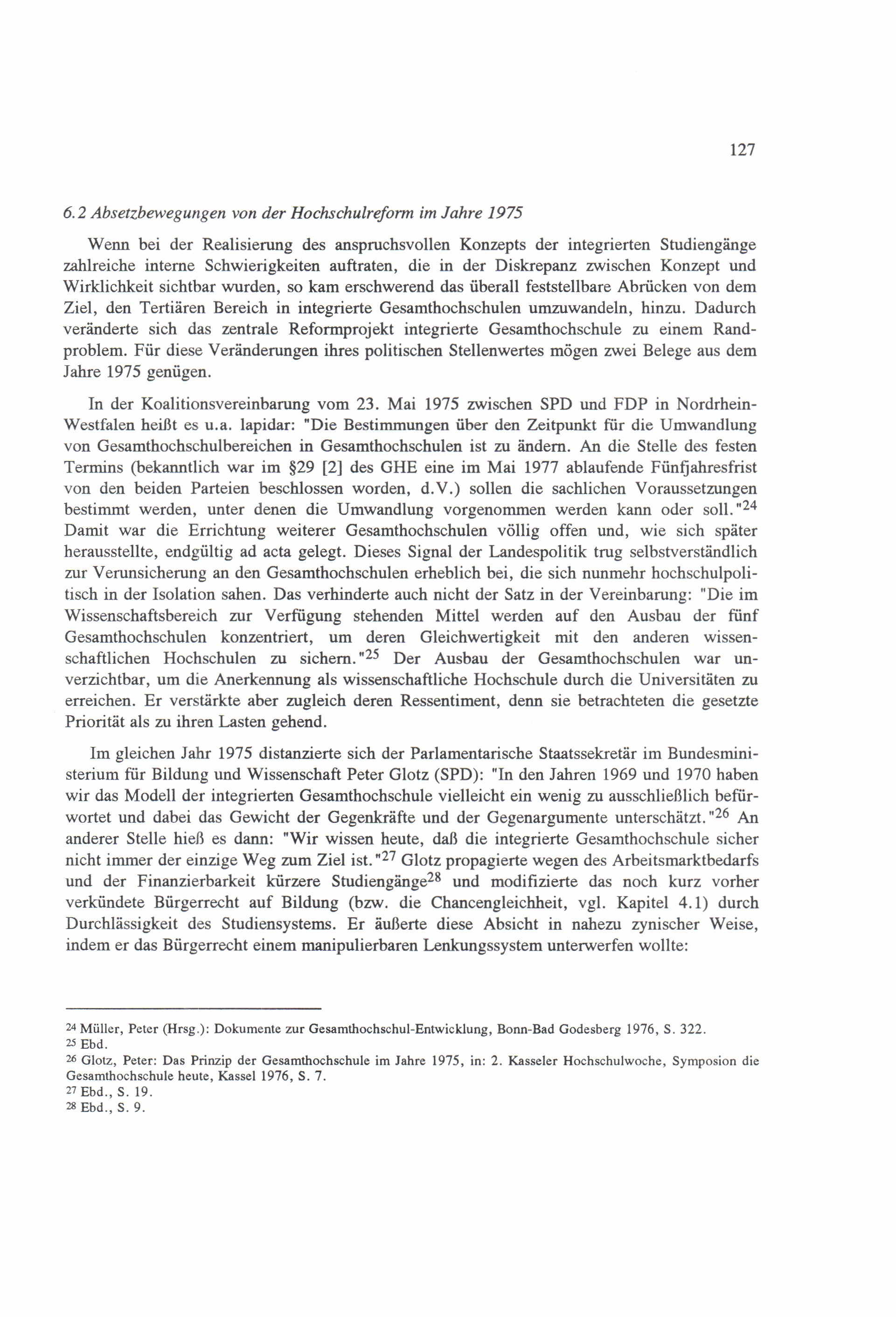 6.2 Absetzbewegungen von der Hochschulreform im Jahre 1975