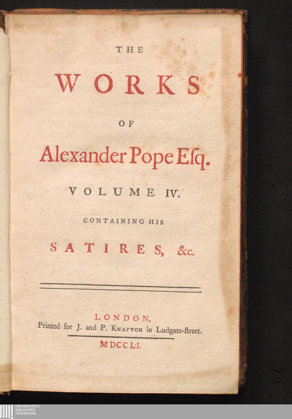 Volume IV. (1751) Containing His Satires &c.