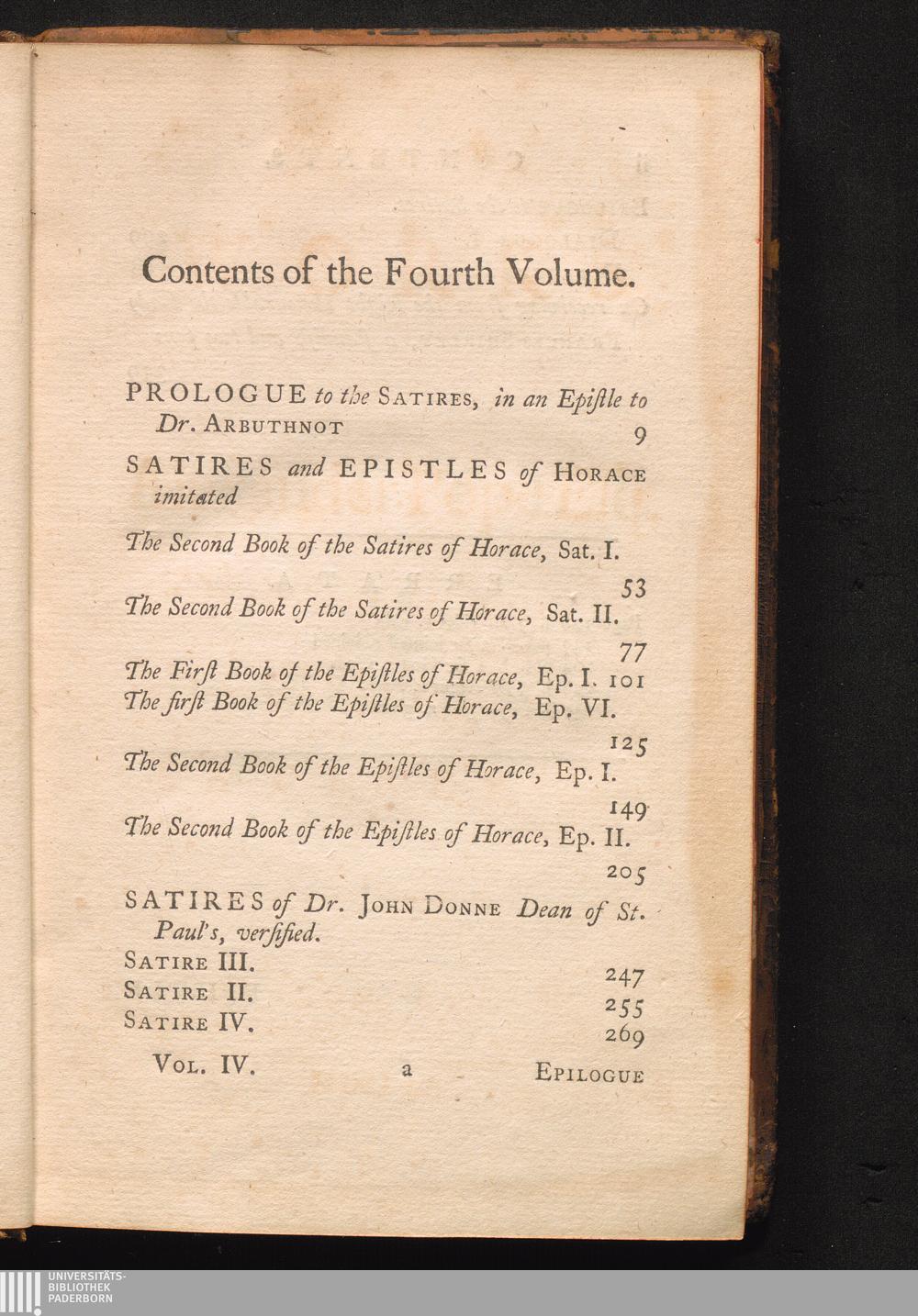 Volume IV. (1751) Containing His Satires &c.