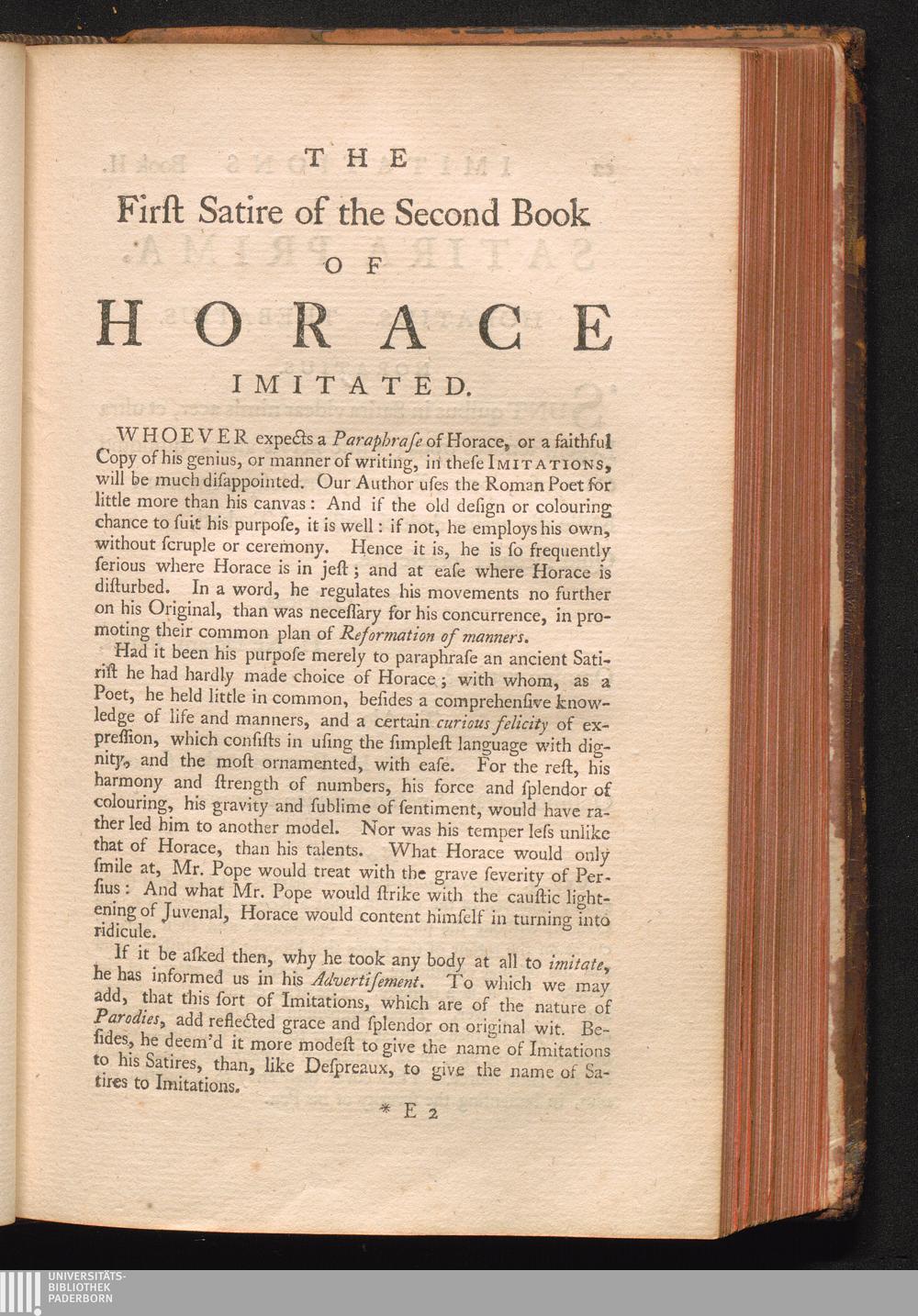 The Second Book of the Satires of Horace, Sat. I.