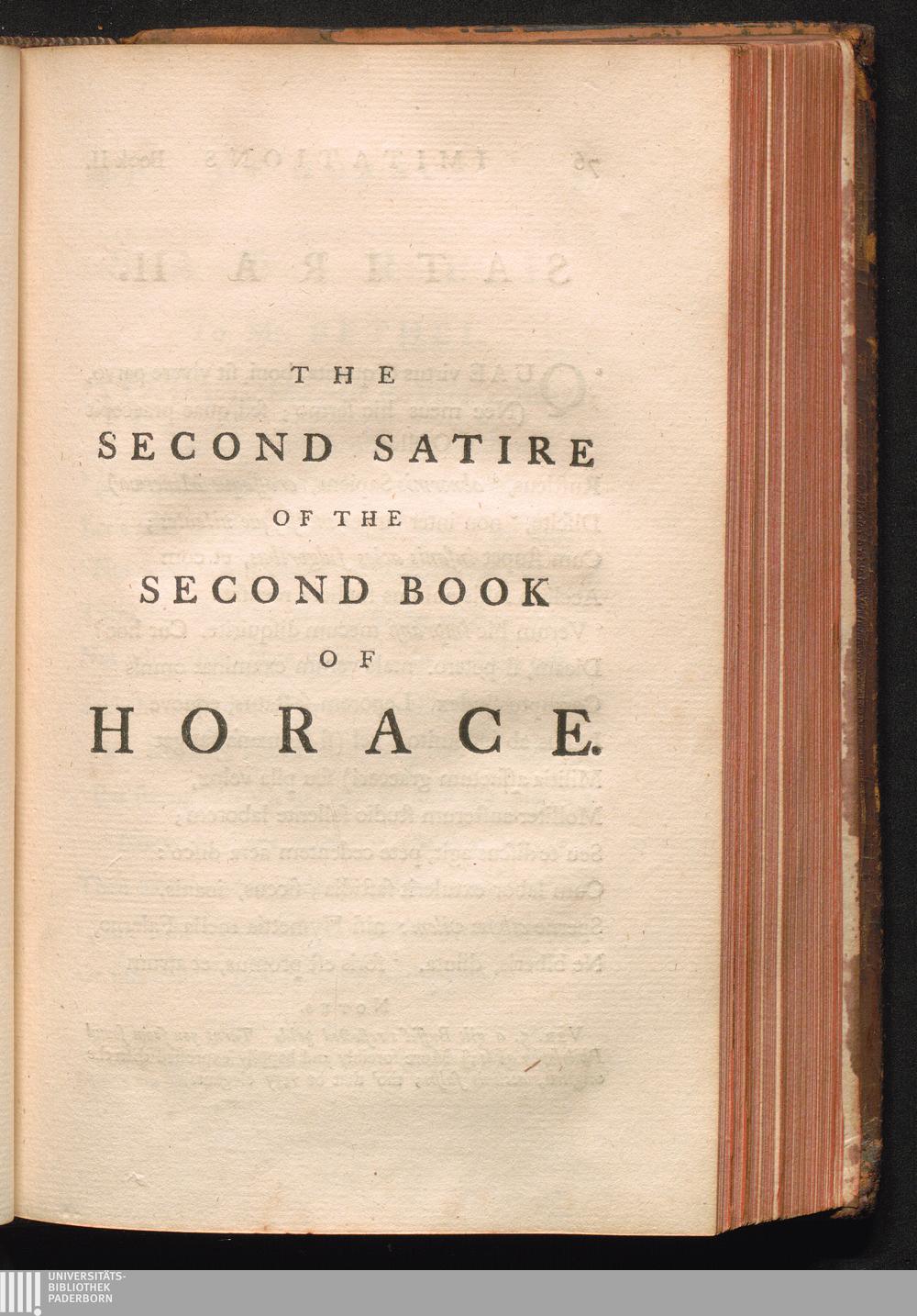 The Second Book of the Satires of Horace, Sat. II.