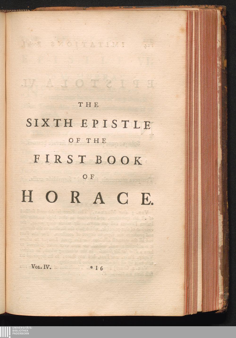 The first Book of the Epistles of Horace, Ep. VI.