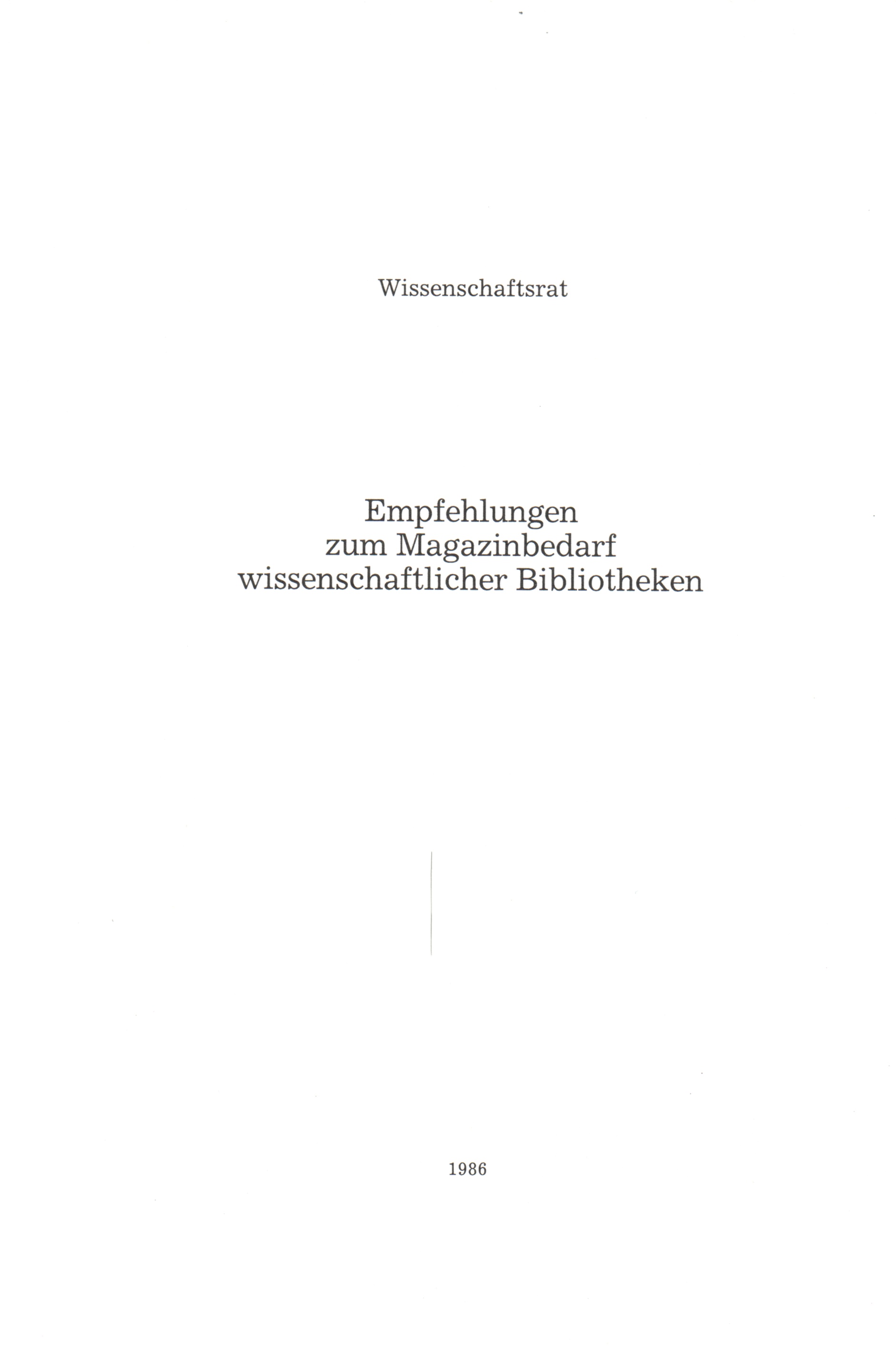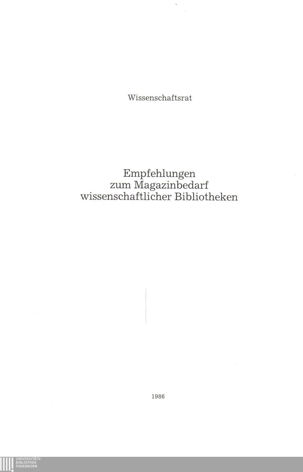 Empfehlungen zum Magazinbedarf wissenschaftlicher Bibliotheken