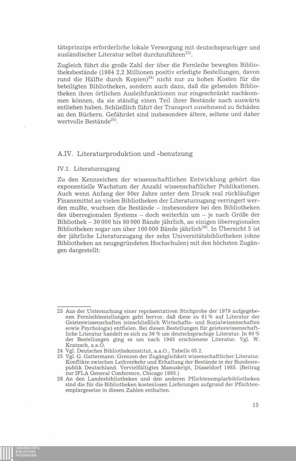 IV. Literaturproduktion und -benutzung