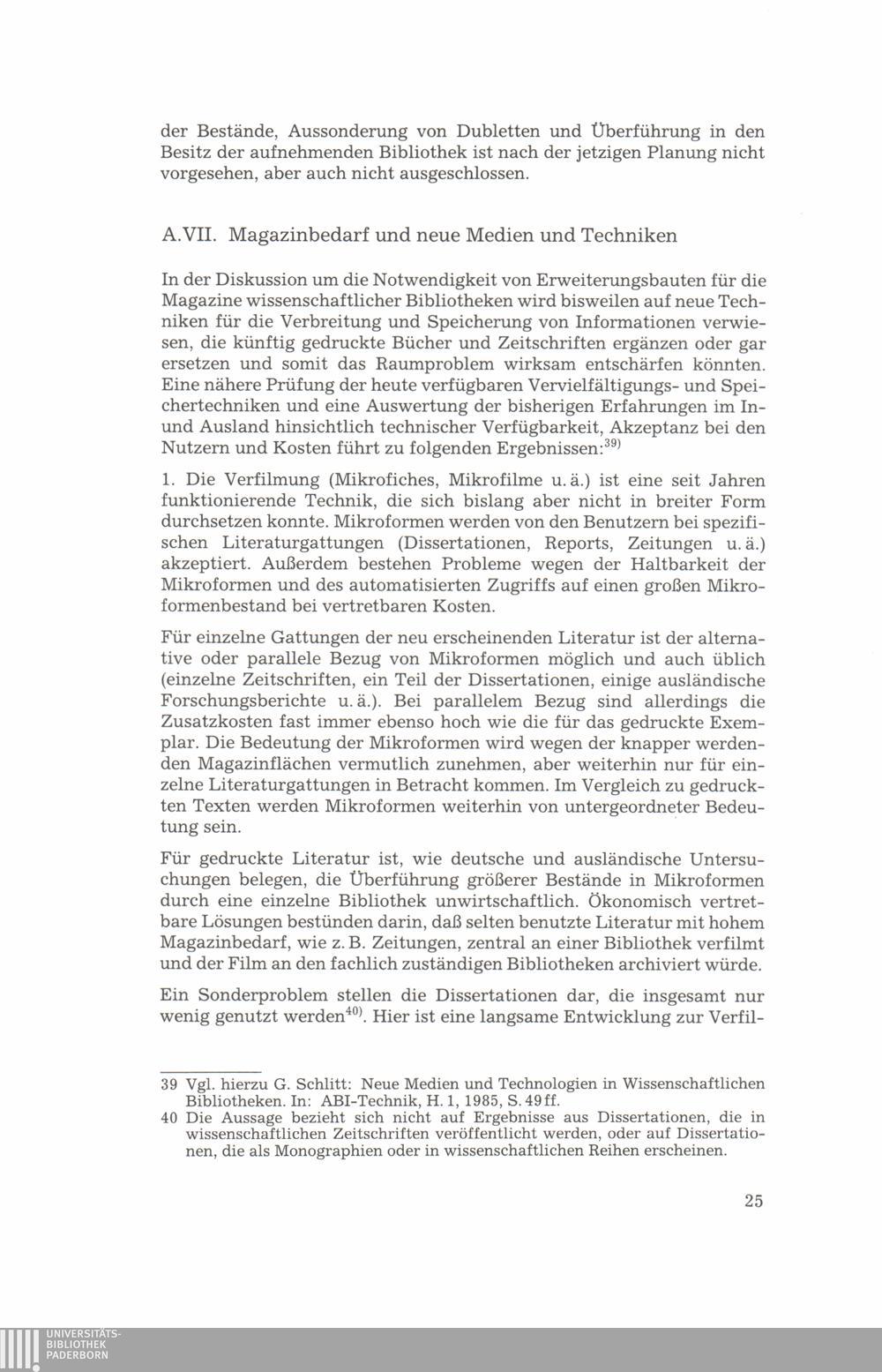 Empfehlungen zum Magazinbedarf wissenschaftlicher Bibliotheken