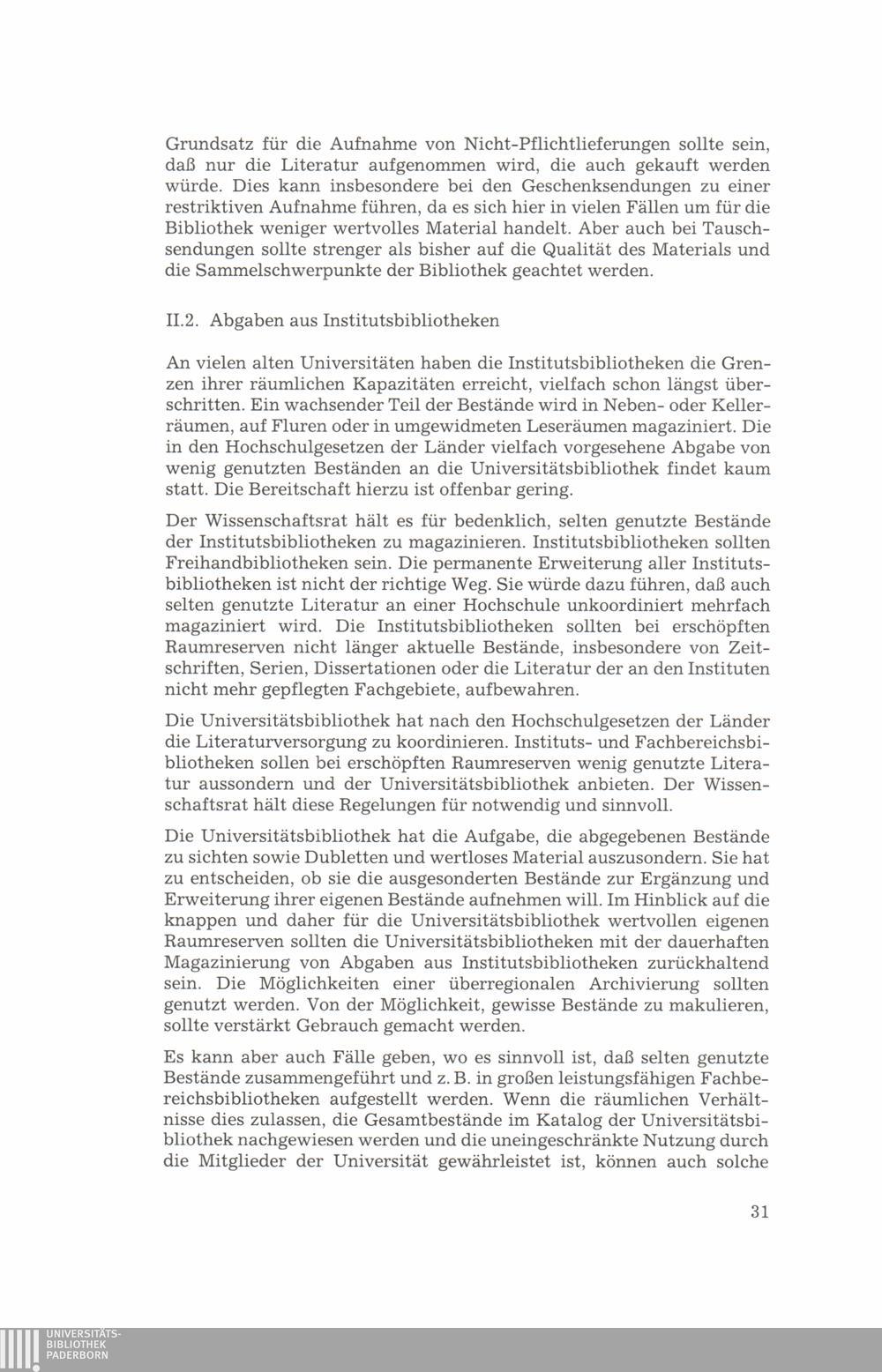 II. Bibliotheksinterne Möglichkeiten zur Verminderung des Magazinbedarfs
