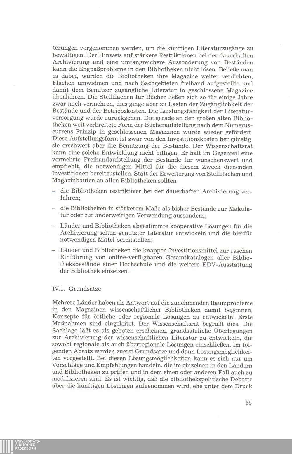 IV. Koordiniertes Programm für die Archivierung selten genutzter Literatur