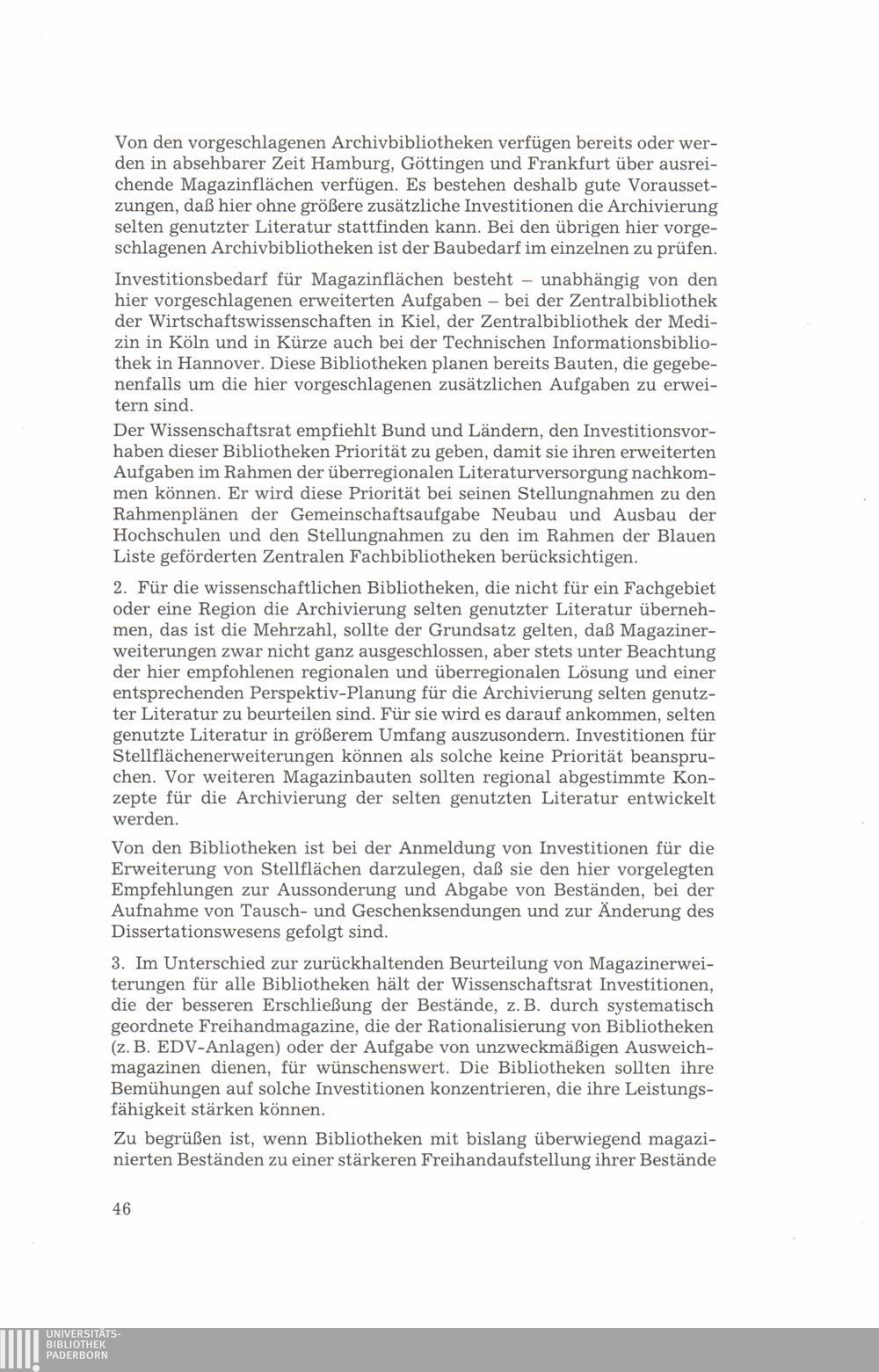 Empfehlungen zum Magazinbedarf wissenschaftlicher Bibliotheken