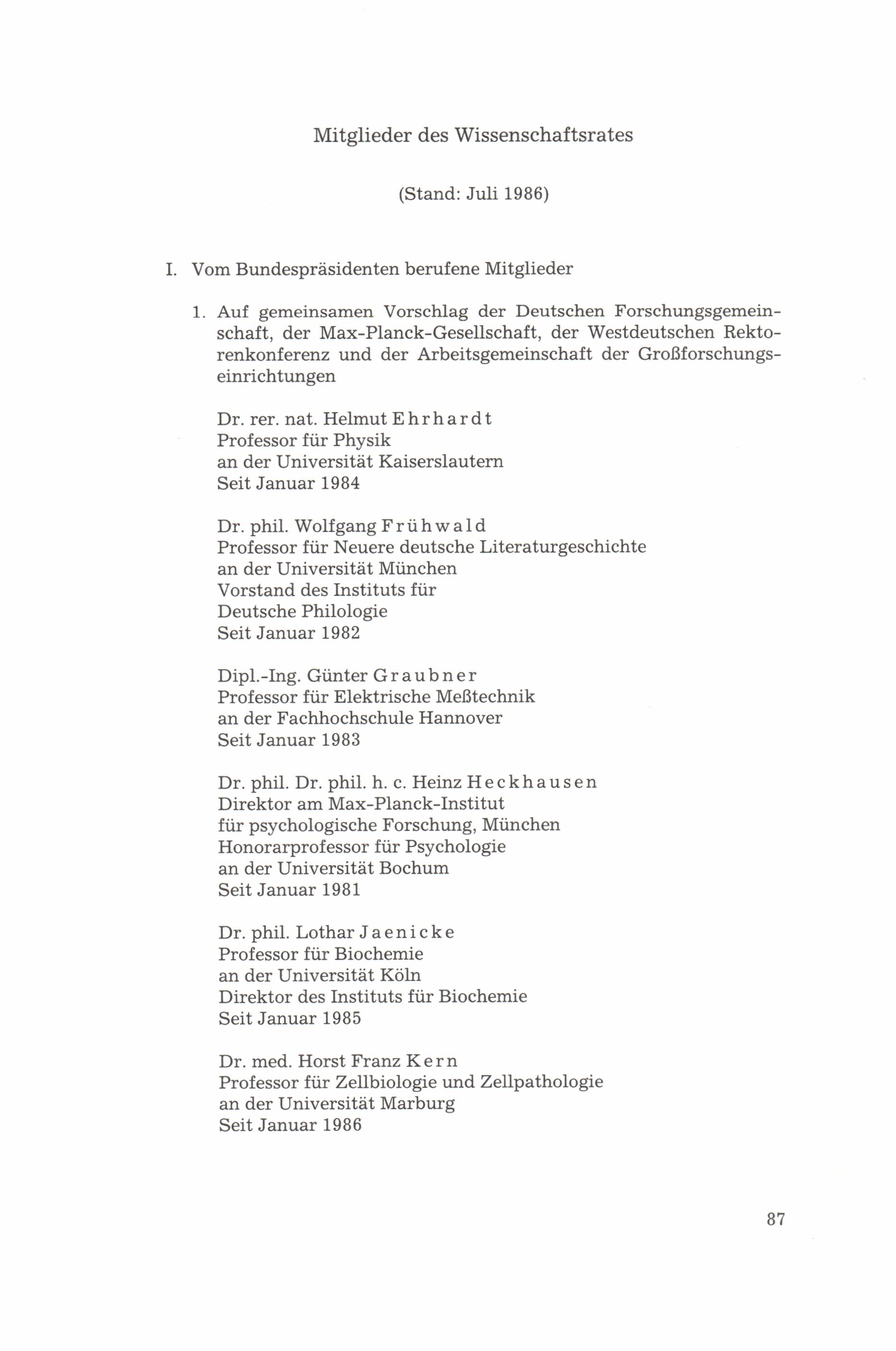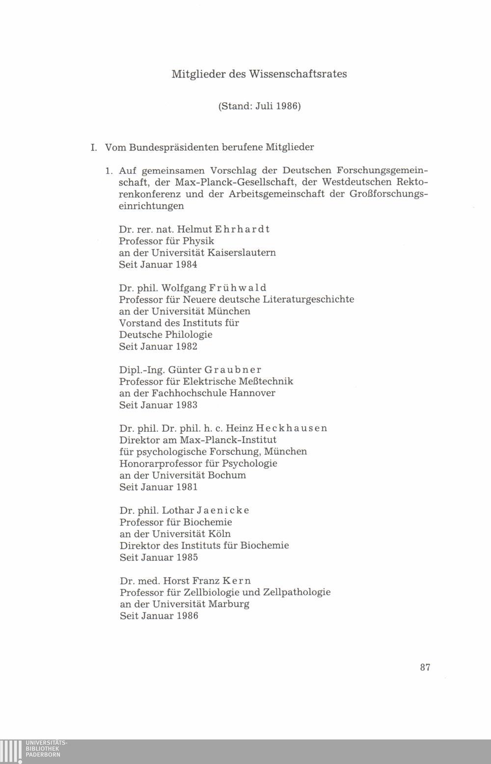 Mitglieder des Wissenschaftsrates