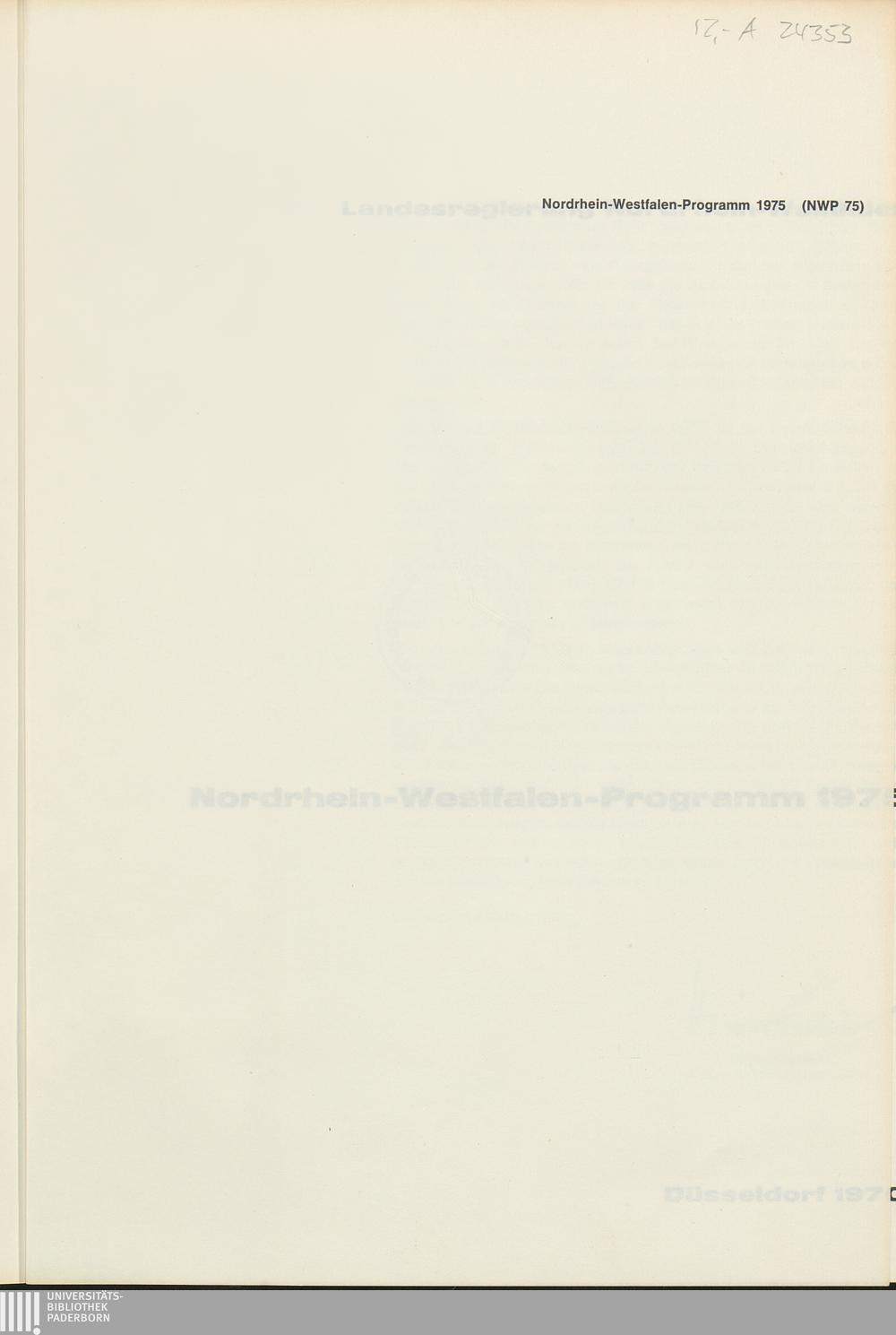 Nordrhein-Westfalen-Programm 1975 / Landesregierung Nordrhein-Westfalen
