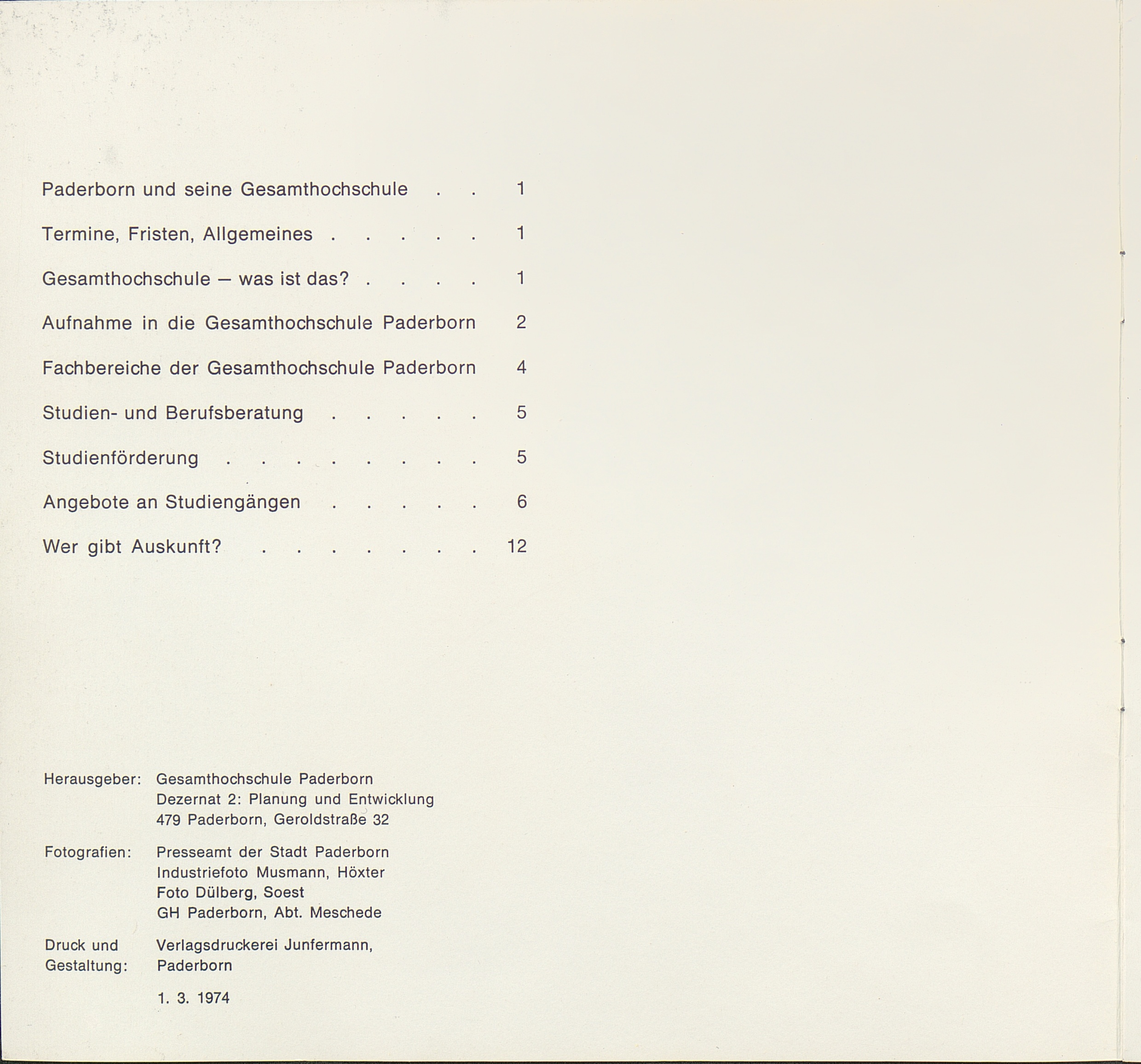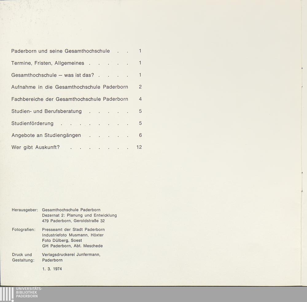 Studium an der Gesamthochschule Paderborn : Informationen über Studienmöglichkeiten an der Gesamthochschule in Paderborn und in den Abteilungen Höxter, Meschede, Soest / [Hrsg.: Gesamthochschule Paderborn]