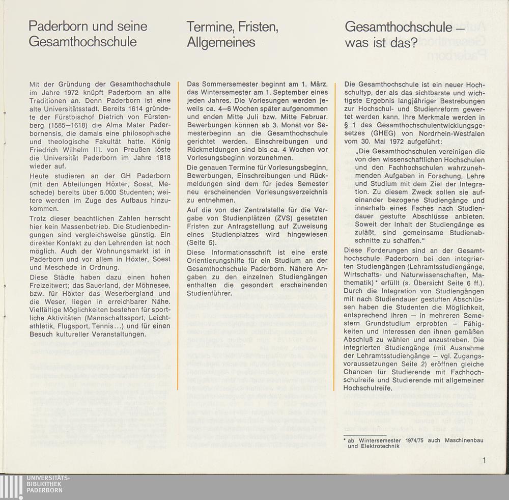 Studium an der Gesamthochschule Paderborn : Informationen über Studienmöglichkeiten an der Gesamthochschule in Paderborn und in den Abteilungen Höxter, Meschede, Soest / [Hrsg.: Gesamthochschule Paderborn]