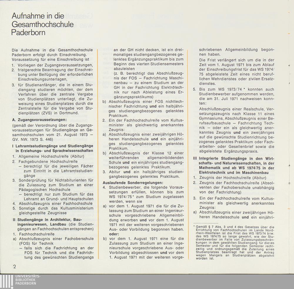 Studium an der Gesamthochschule Paderborn : Informationen über Studienmöglichkeiten an der Gesamthochschule in Paderborn und in den Abteilungen Höxter, Meschede, Soest / [Hrsg.: Gesamthochschule Paderborn]