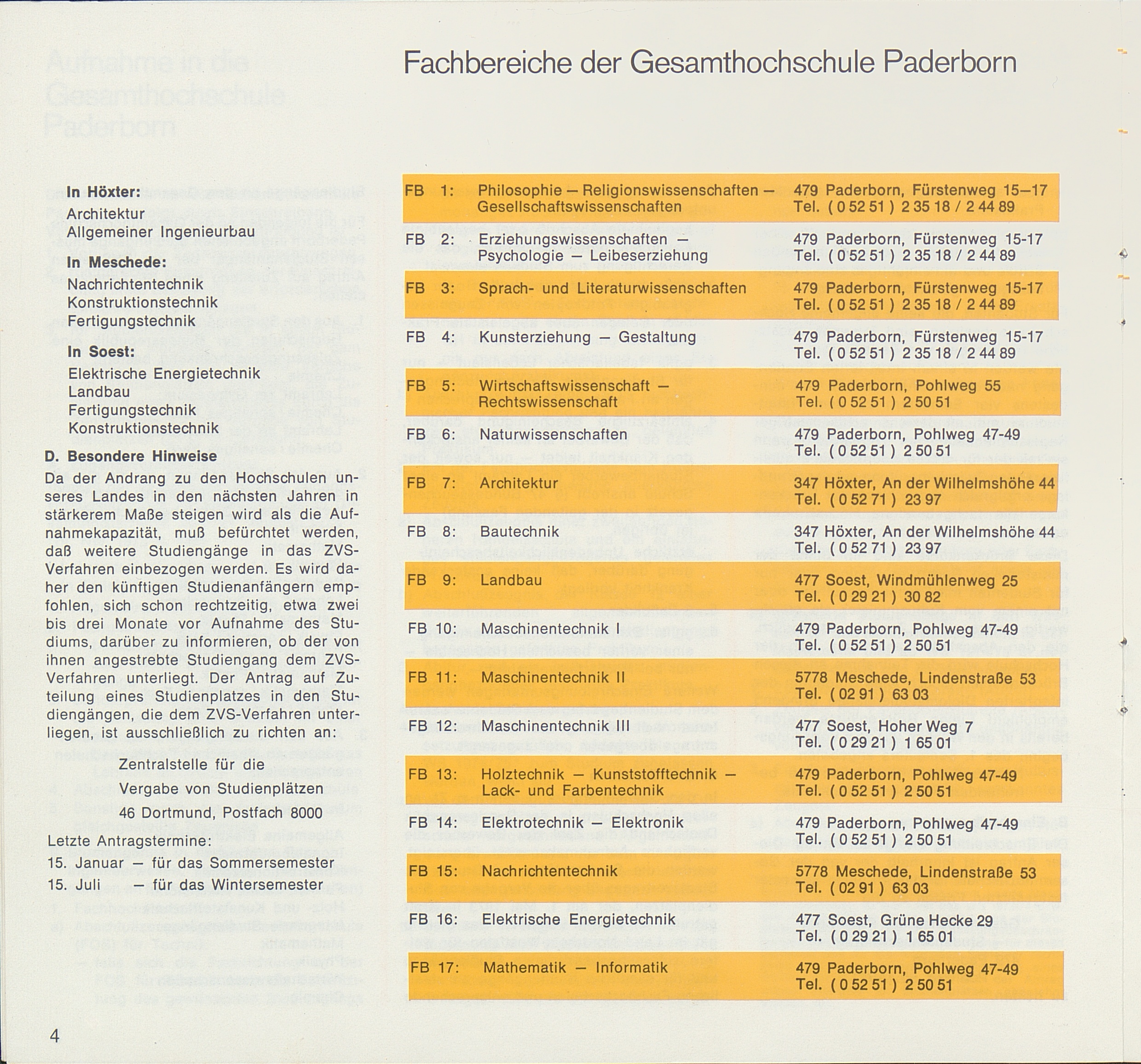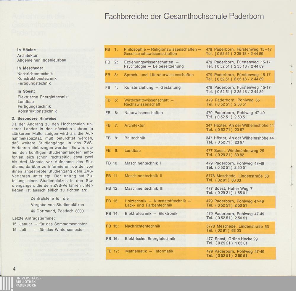 Studium an der Gesamthochschule Paderborn : Informationen über Studienmöglichkeiten an der Gesamthochschule in Paderborn und in den Abteilungen Höxter, Meschede, Soest / [Hrsg.: Gesamthochschule Paderborn]