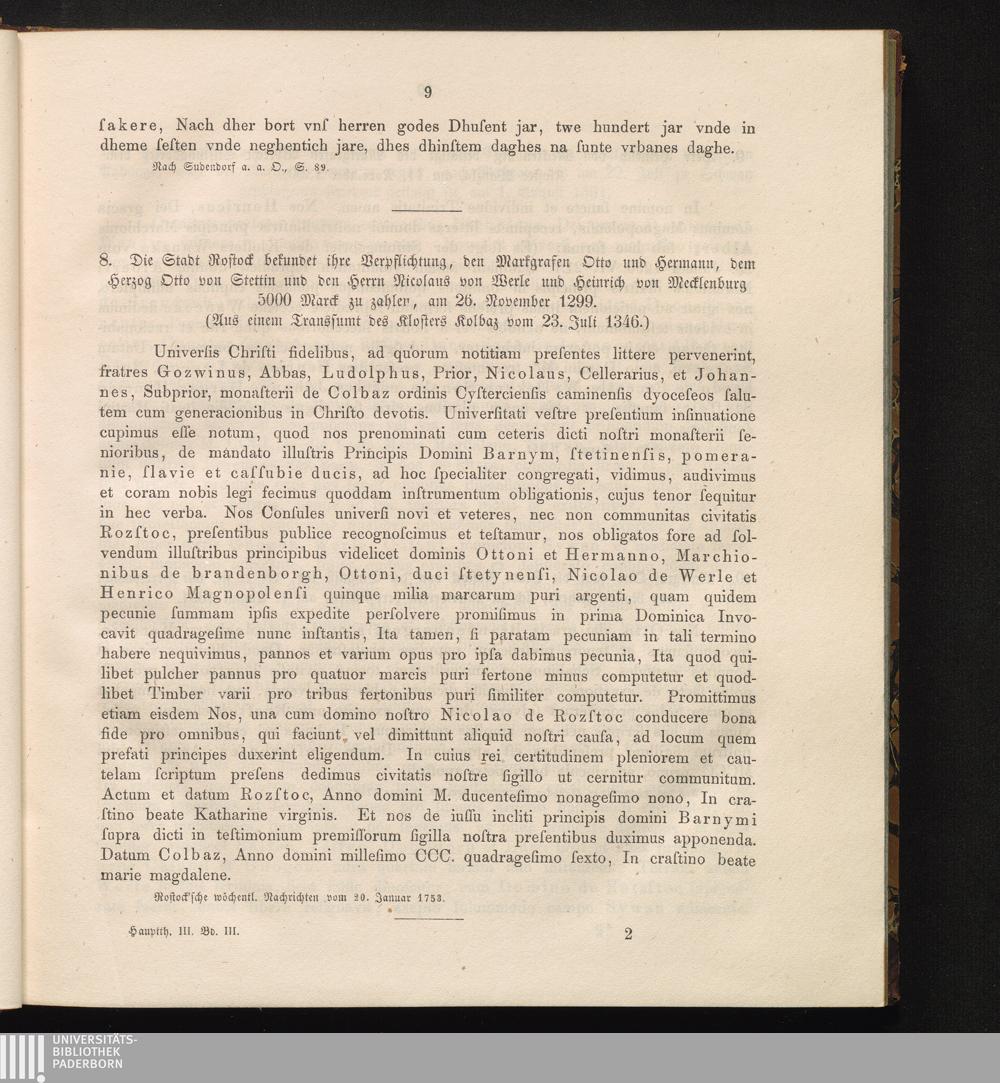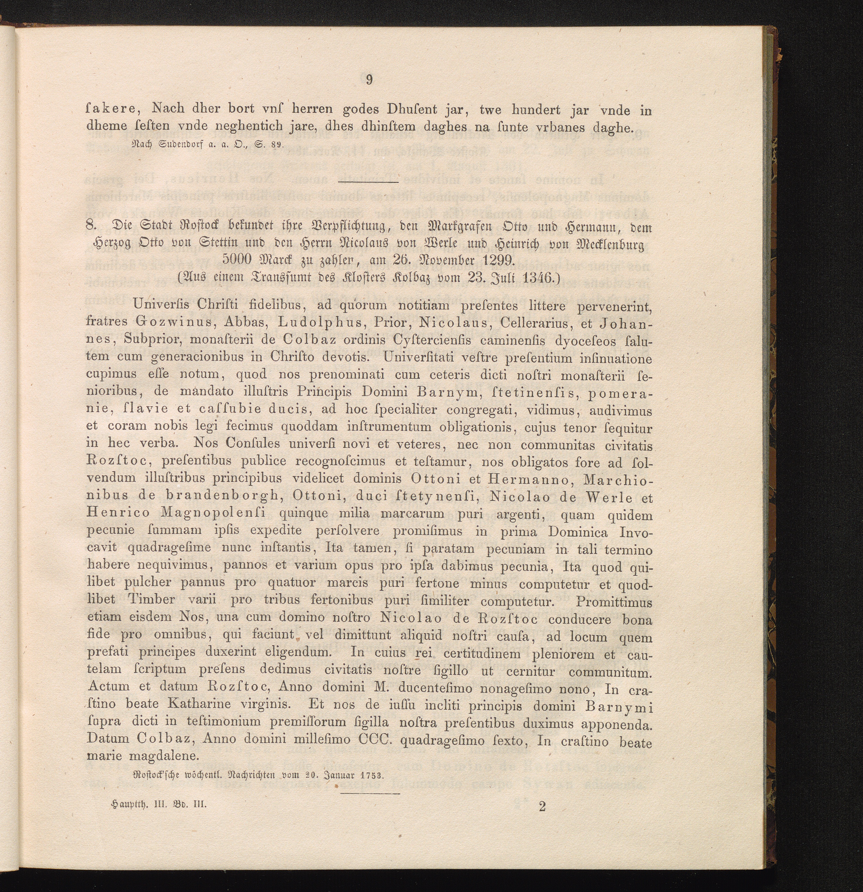 8. Die Stadt Rostock bekundet ihre Verpflichtung, den Markgrafen Otto und Hermann,[...]