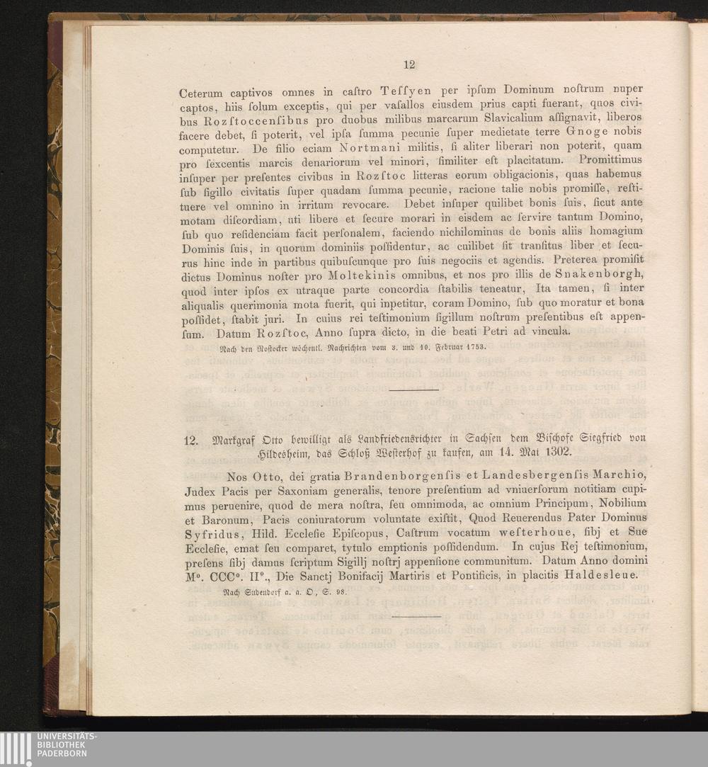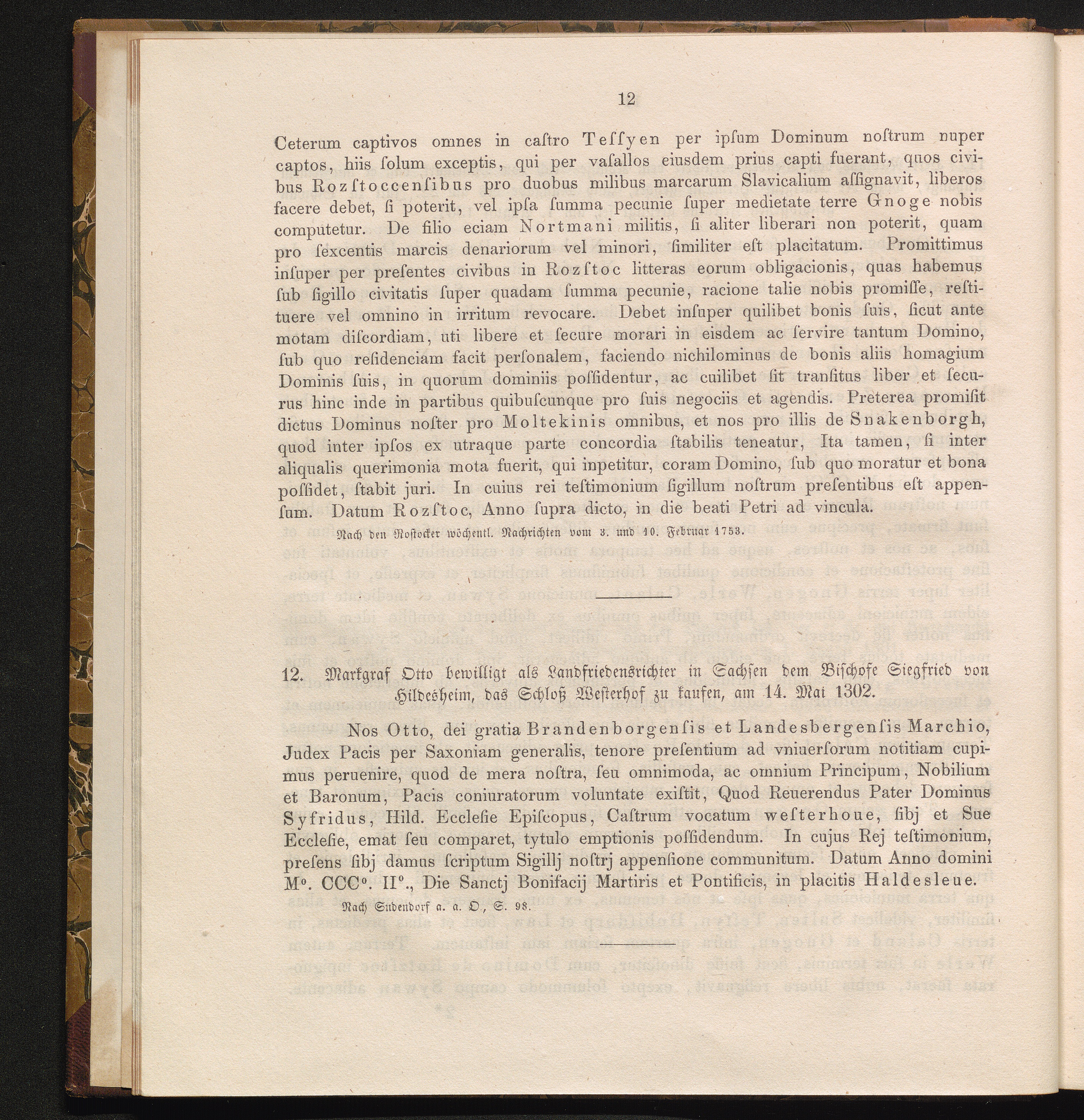 12. Margraf Otto bewilligt als Landfriedensrichter in Sachsen dem Bischofe Siegfried[...]