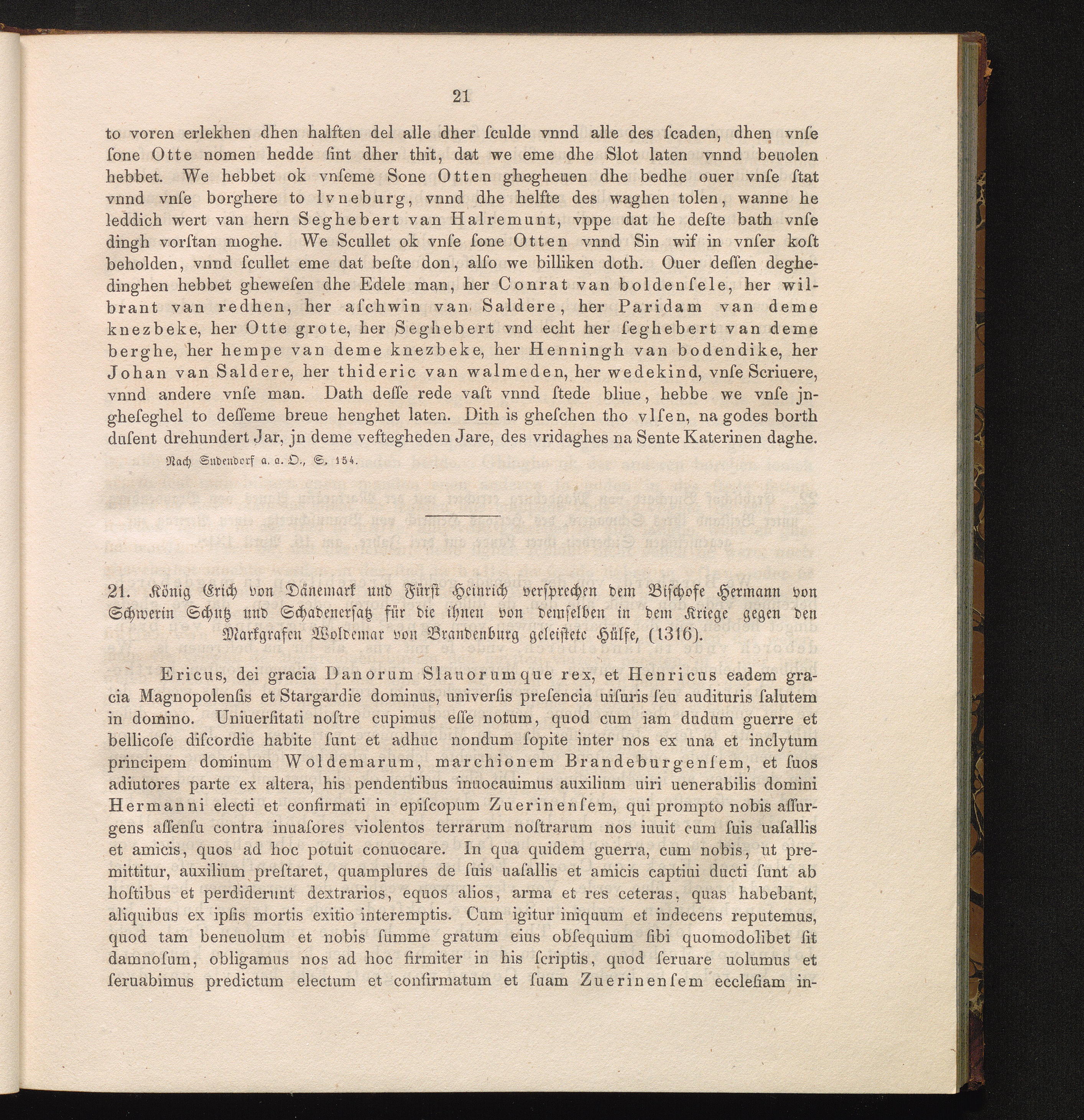 21. König Erich von Dänemark und Fürst Heinrich versprechen dem Bischofe Hermann[...]