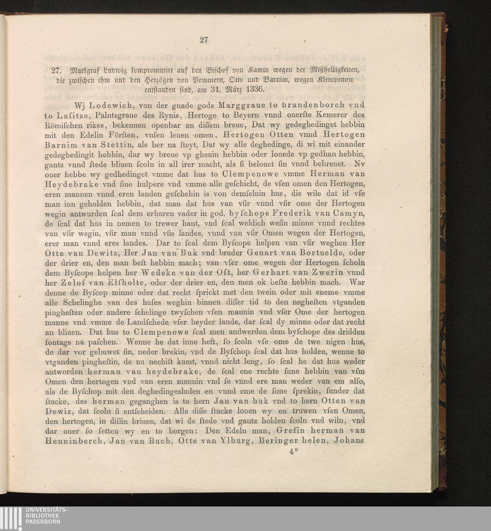 27. Markgraf Ludwig kompromittirt auf den Bischof von Kamin wegen der Mißhelligkeiten,[...]