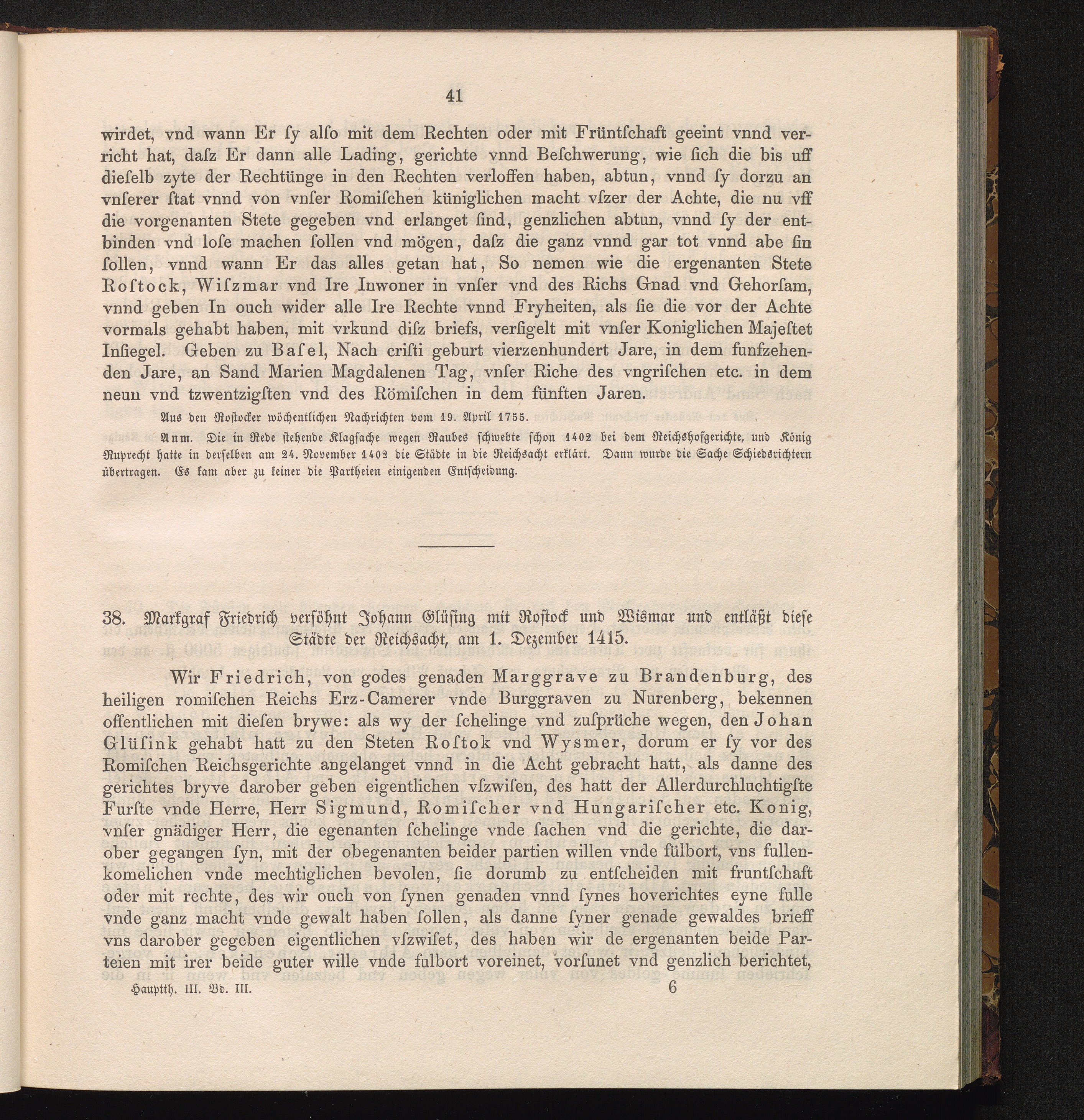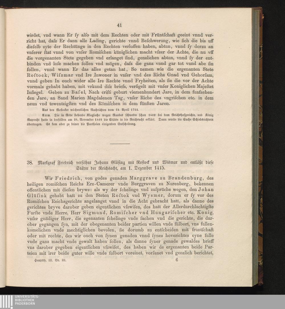 38. Markgraf Friedrich versöhnt Johann Glüsing mit Rostock und Wismar und entläßt[...]