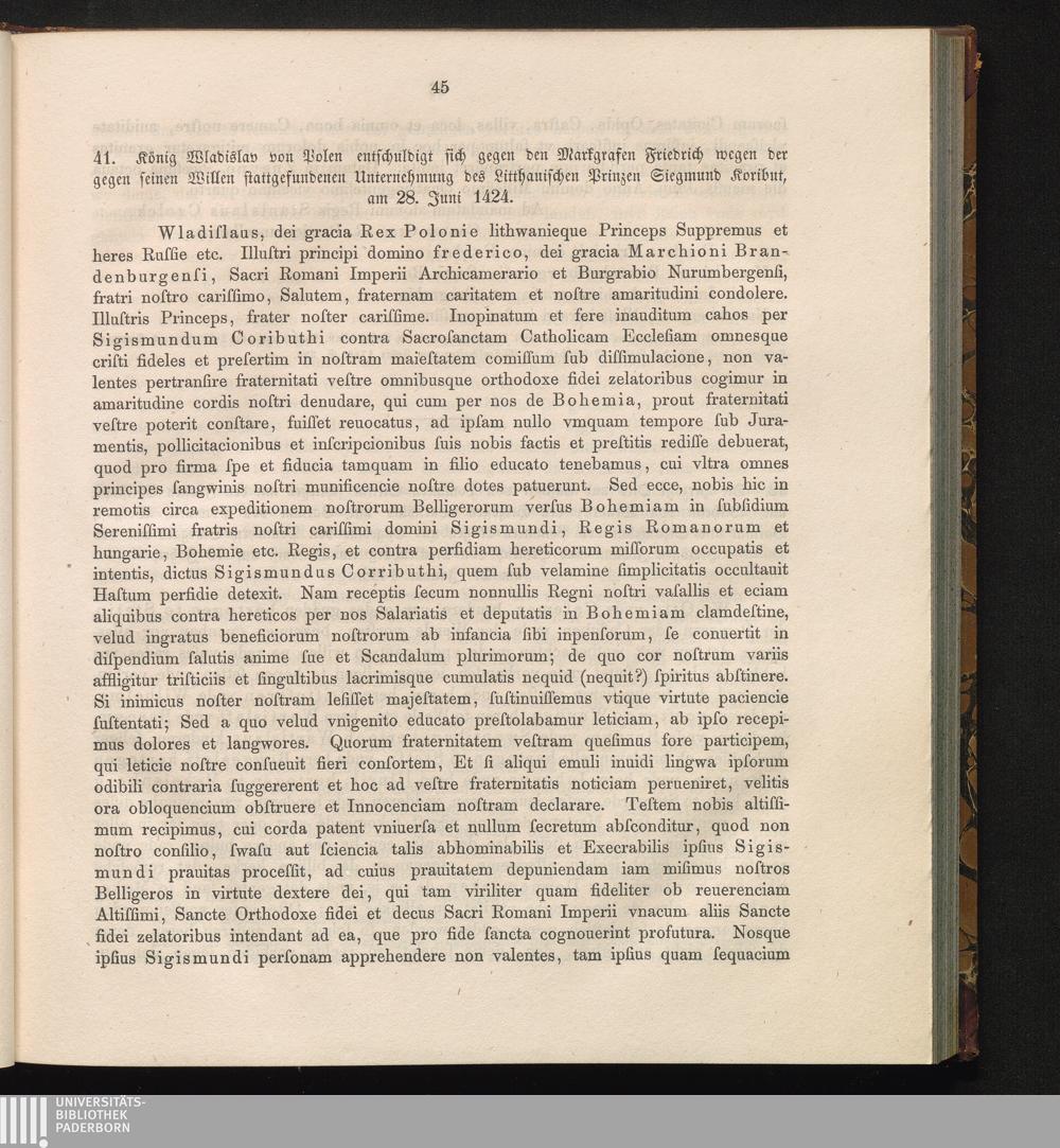 41. König Wladislav von Polen entschuldigt sich gegen den Markgrafen Friedrich wegen[...]