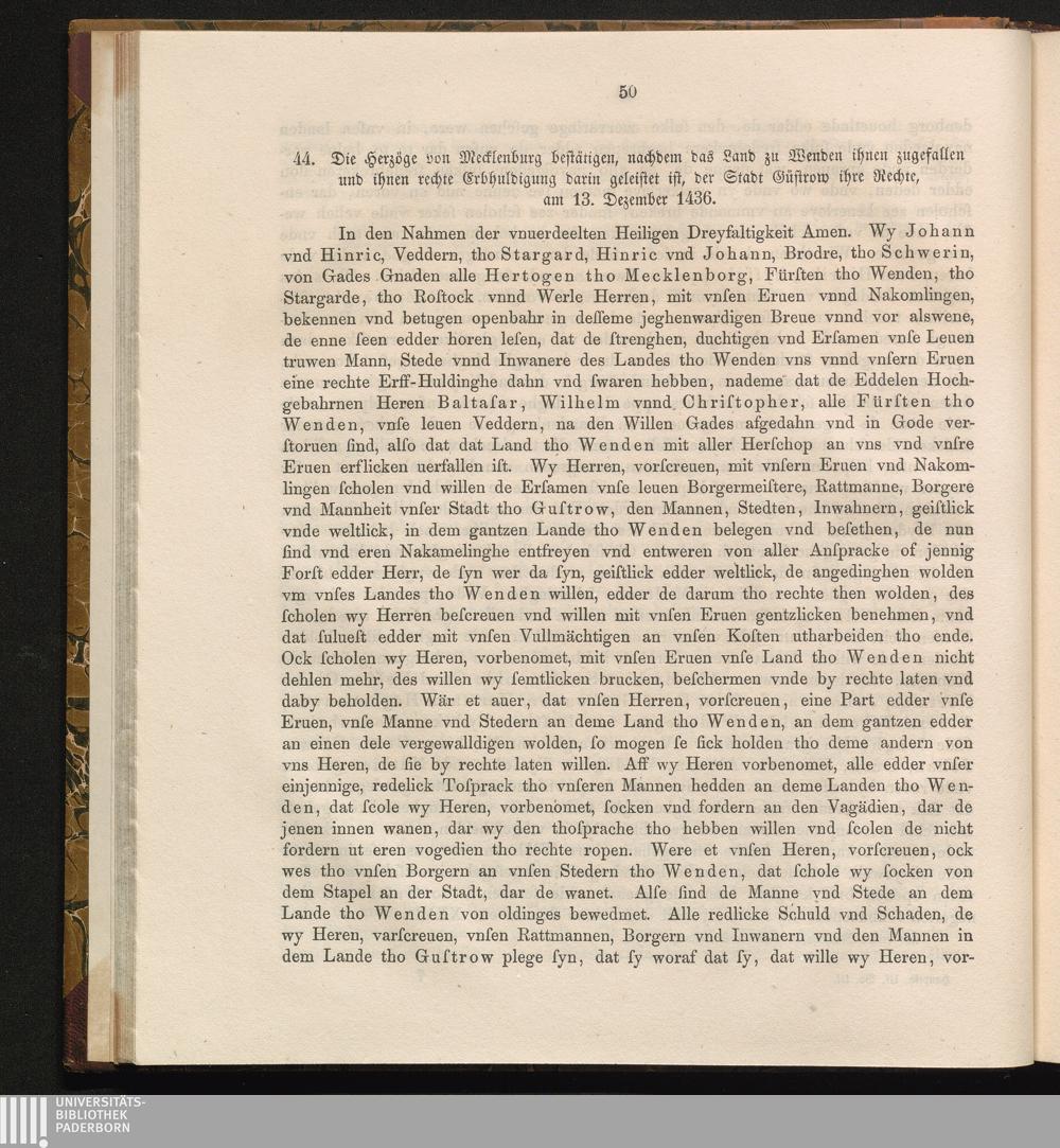 44. Die Herzöge von Mecklenburg bestätigen, nachdem das Land zu Wenden ihren zugefallen[...]