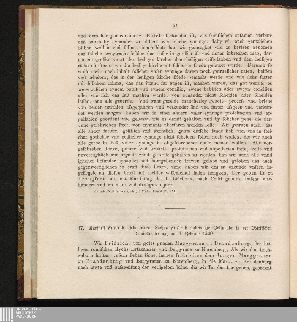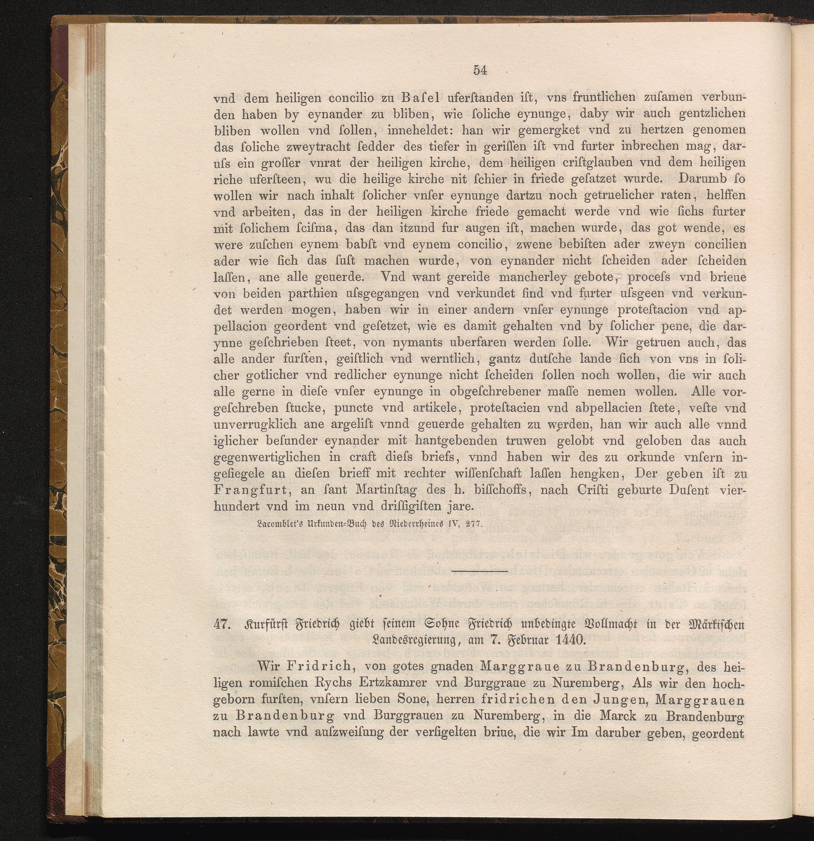 47. Kurfürst Friedrich giebt seinem Sohne Friedrich unbedingte Vollmacht in der Märkischen[...]