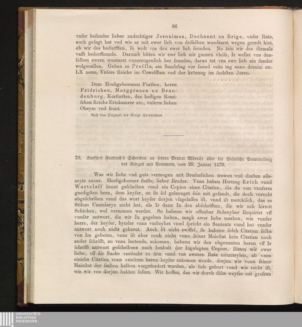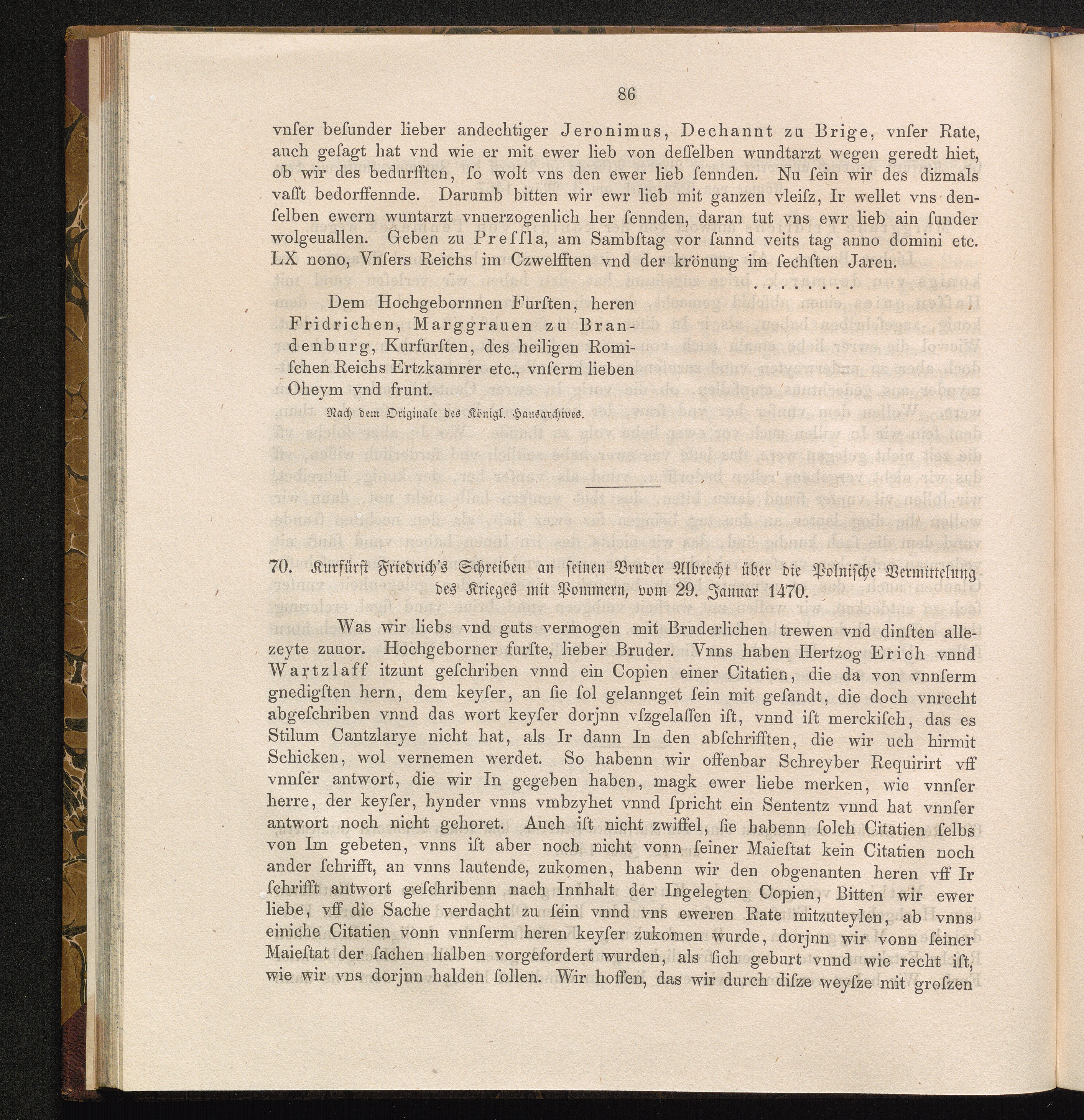 70. Kurfürst Friedrich's Schreiben an seinen Bruder Albrecht über die Polnische Vermittlung[...]