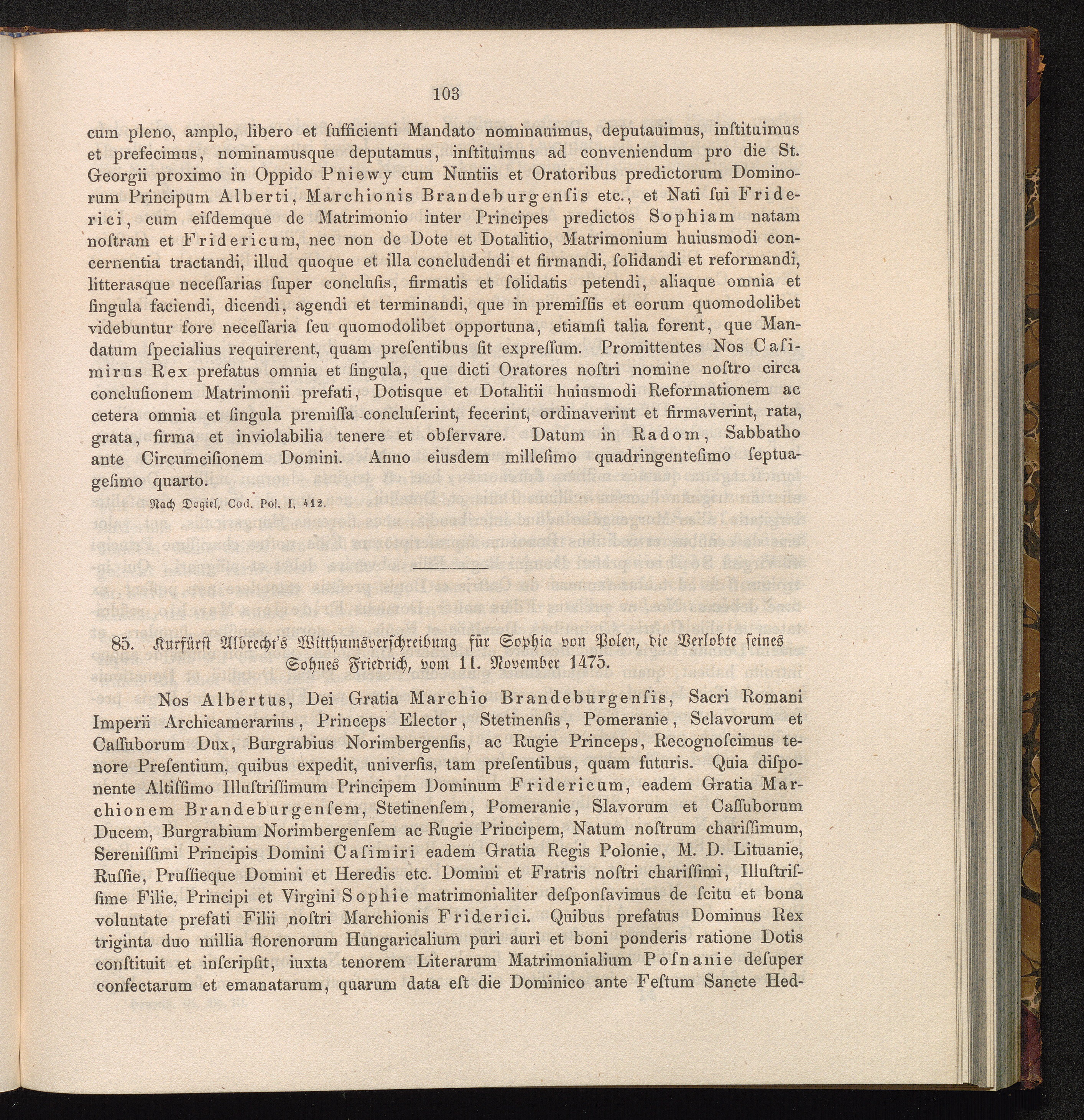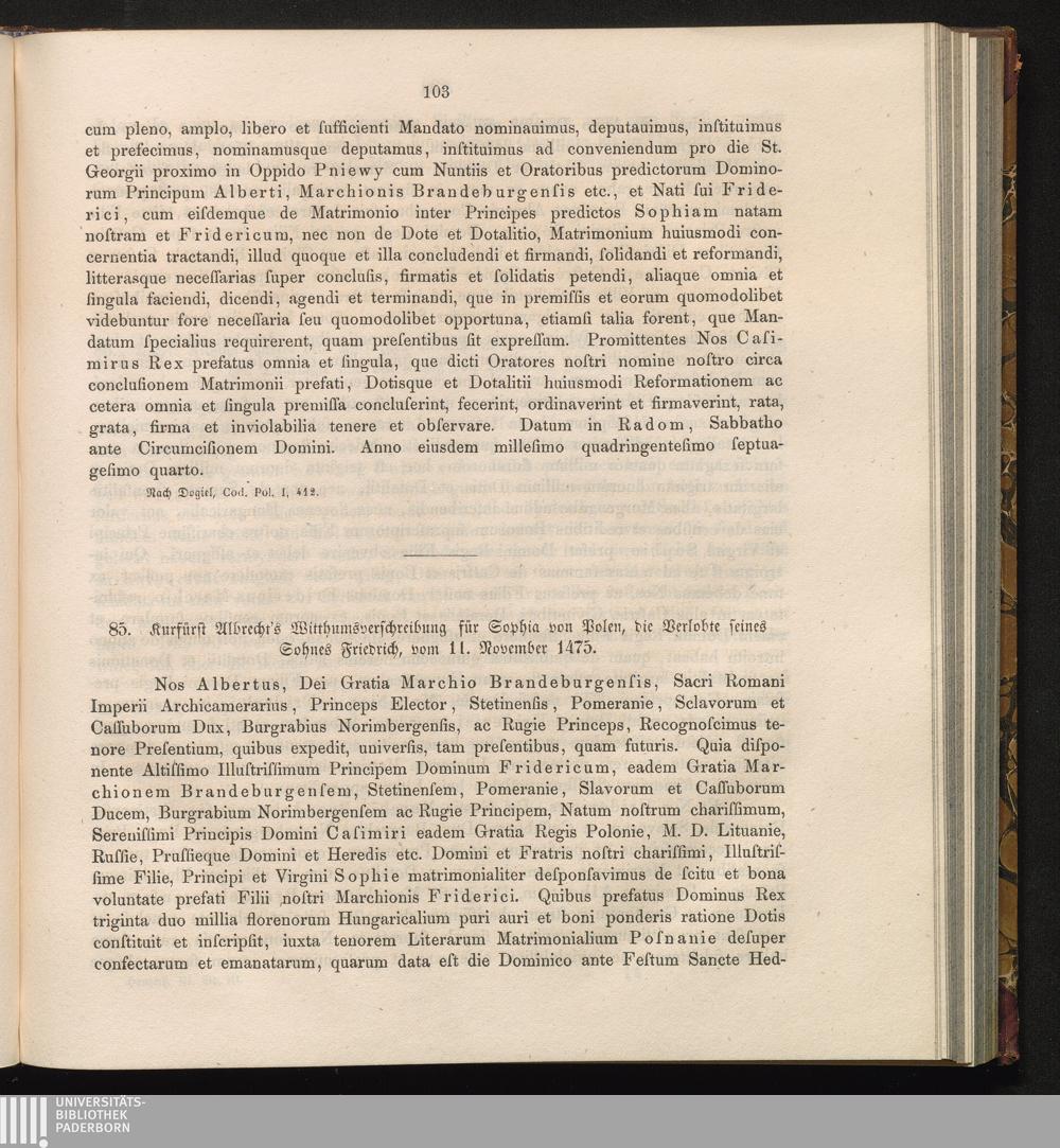 85. Kurfürst Albrecht's Witthumsverschreibung für Sophia von Polen, die Verlobte[...]