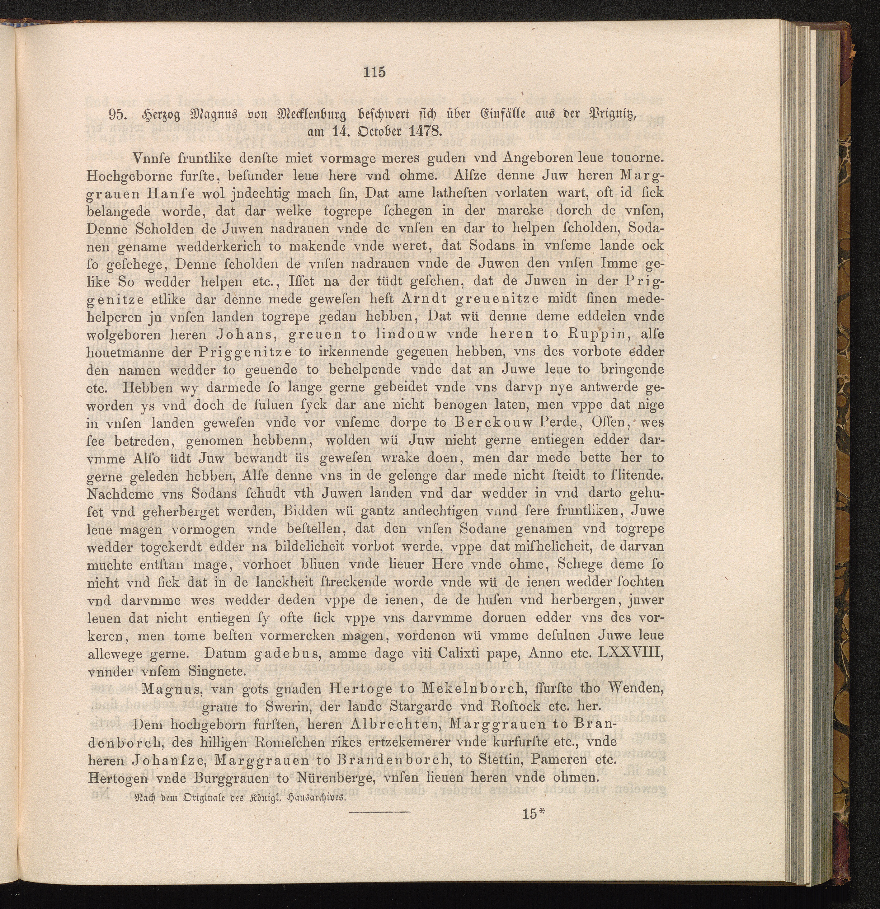95. Herzog Magnus von Mecklenburg beschwert sich über Einfälle aus der Prignitz am[...]