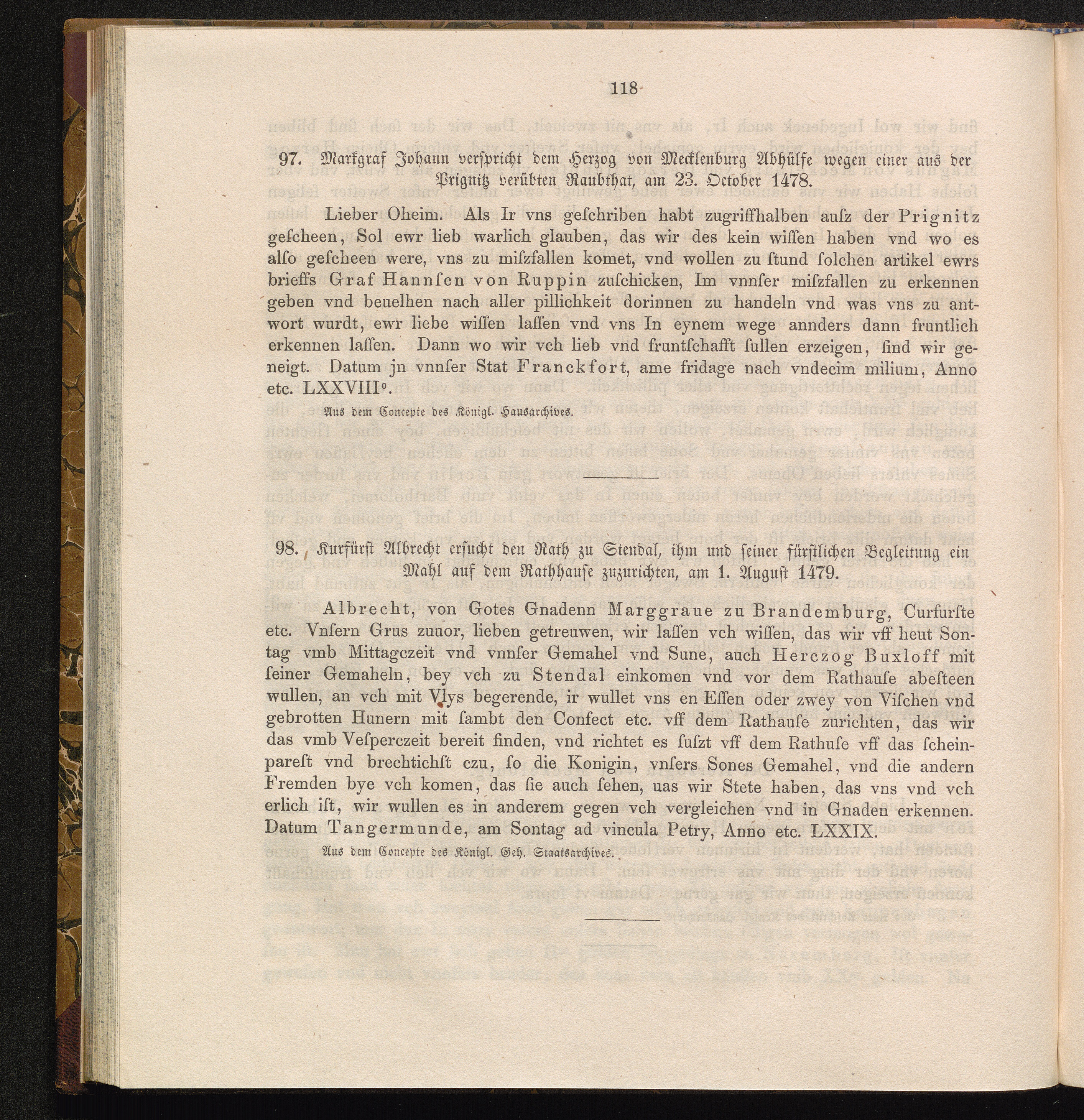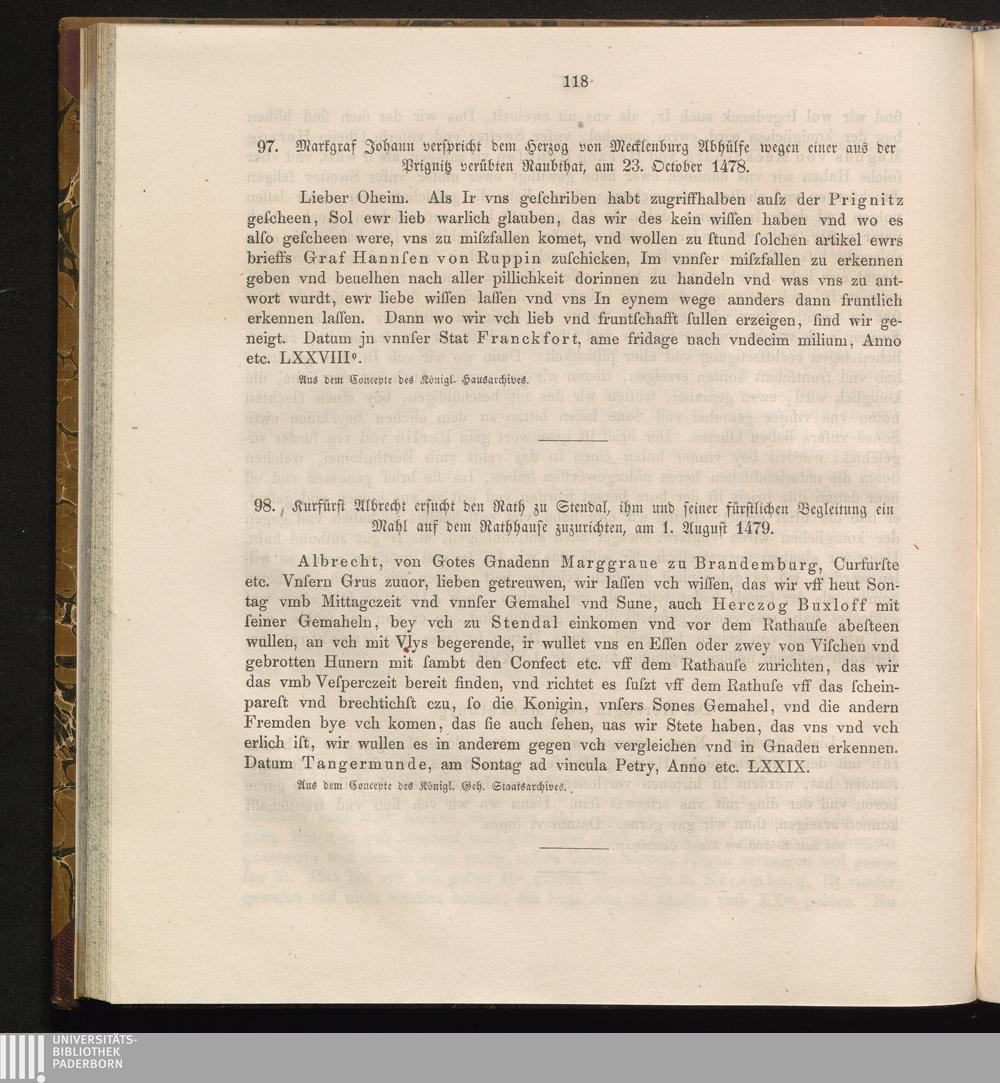97. Markgraf Johann verspricht dem Herzog von Mecklenburg Abhülfe wegen einer aus[...]