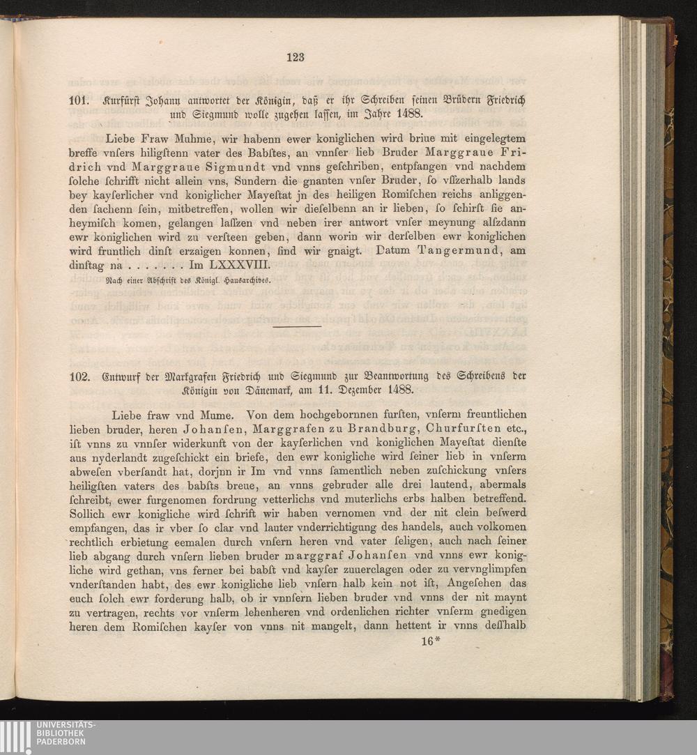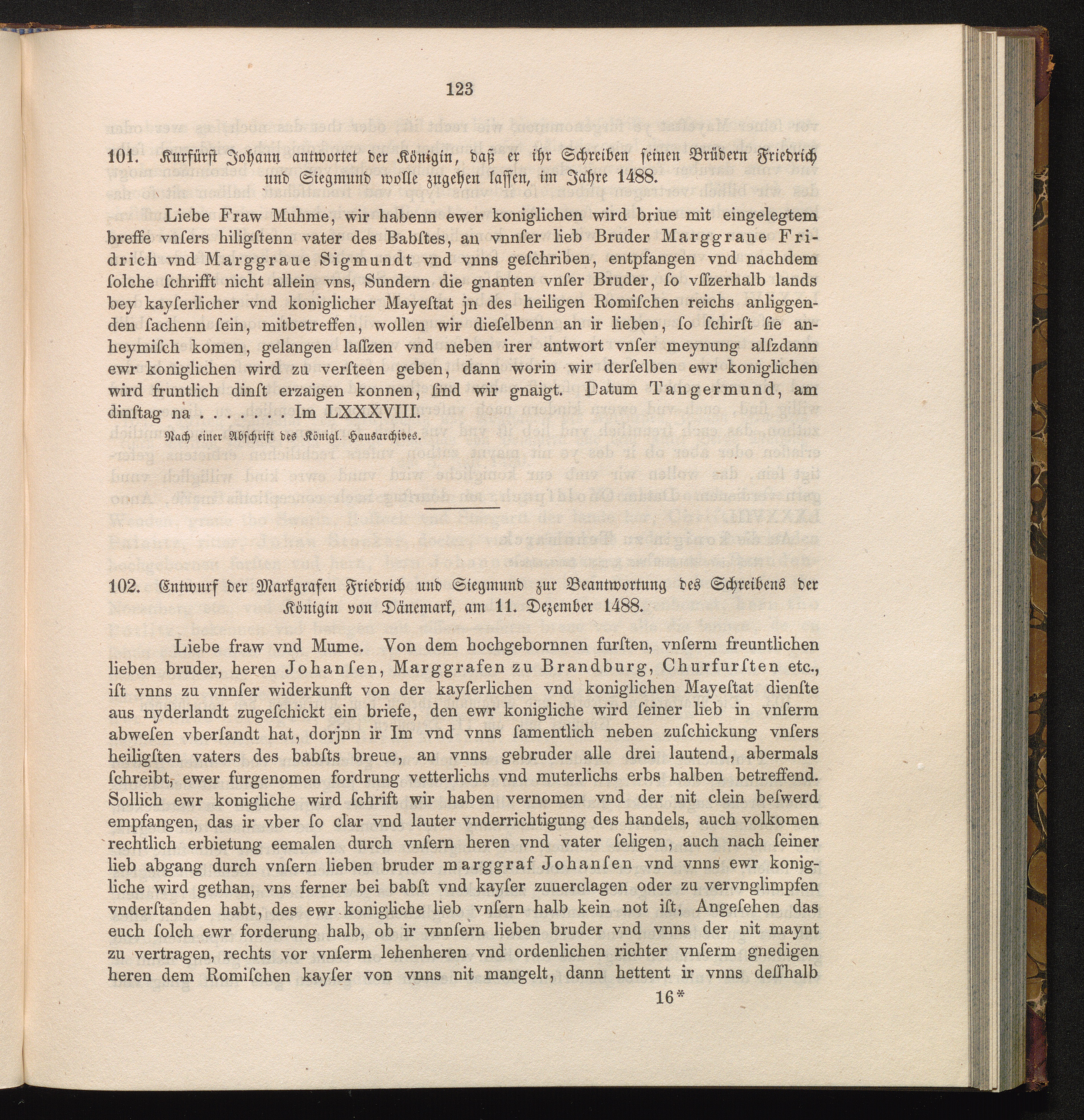 101. Kurfürst Johann antwortet der Königin, daß er ihr Schreiben seinen Brüdern Friedrich[...]