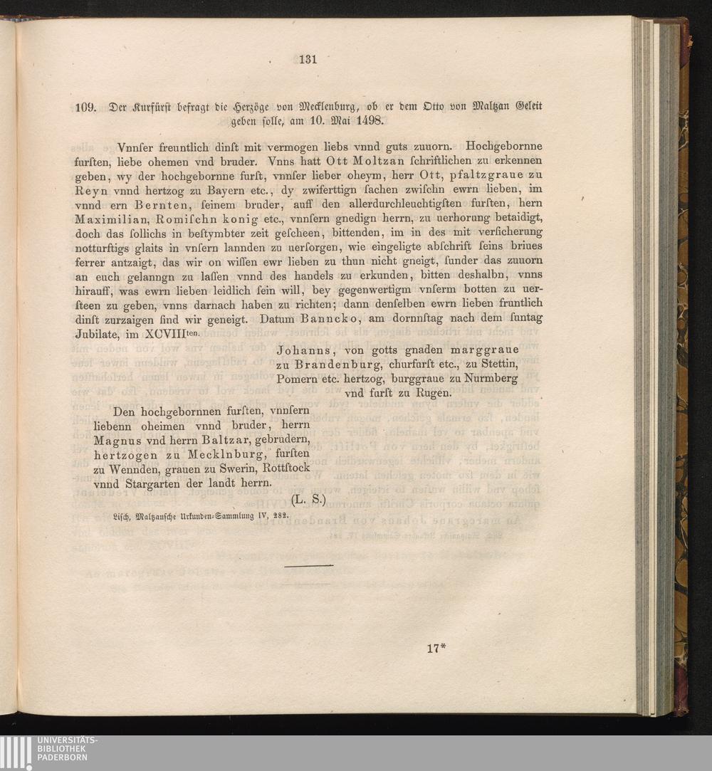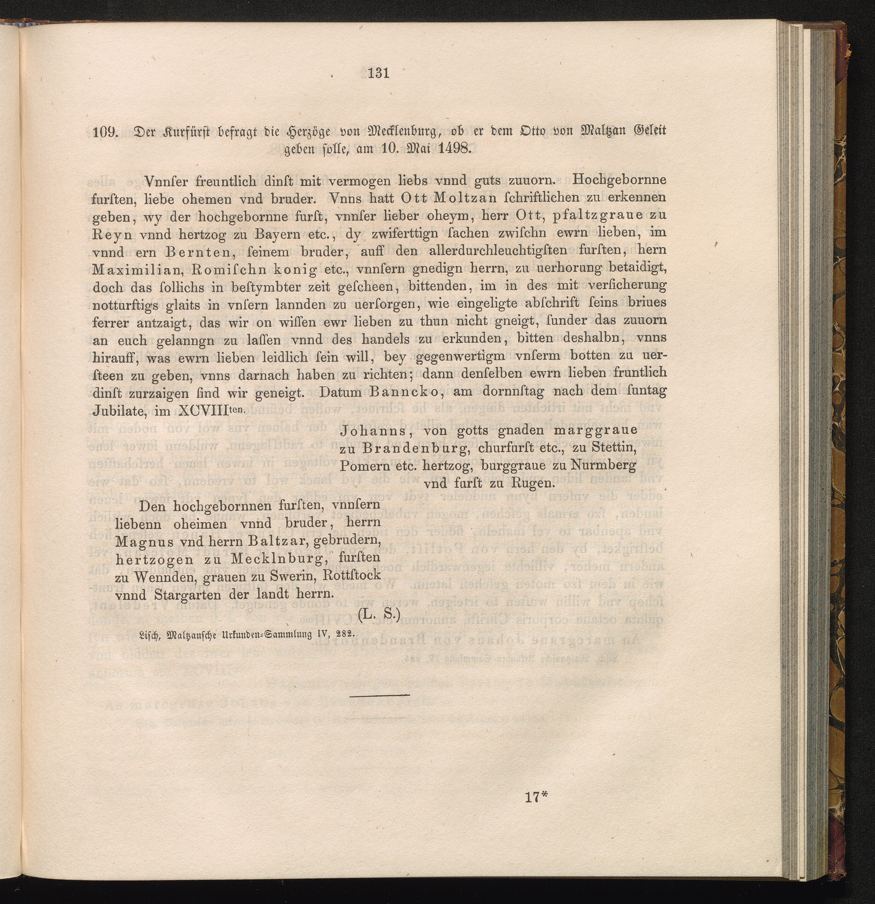 109. Der Kurfürst befragt die Herzöge von Mecklenburg, ob er dem Otto von Maltzan[...]