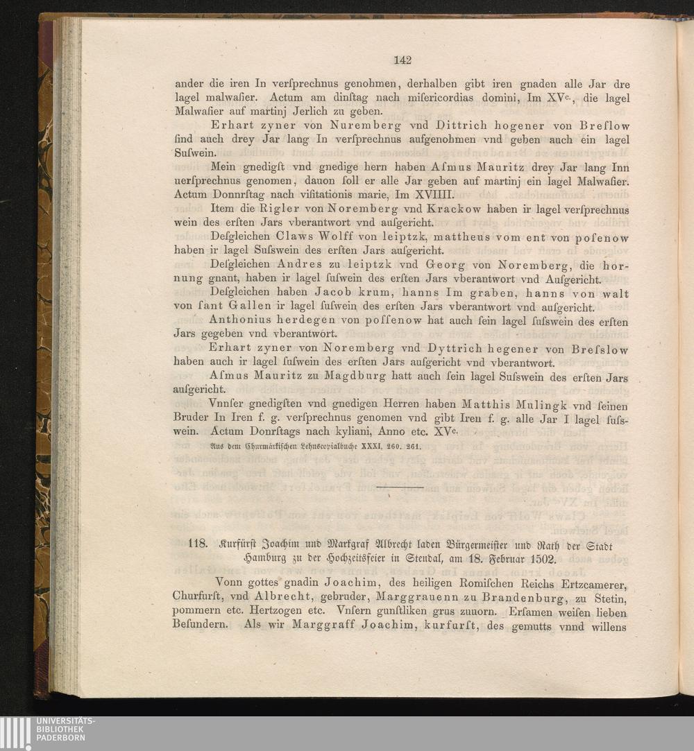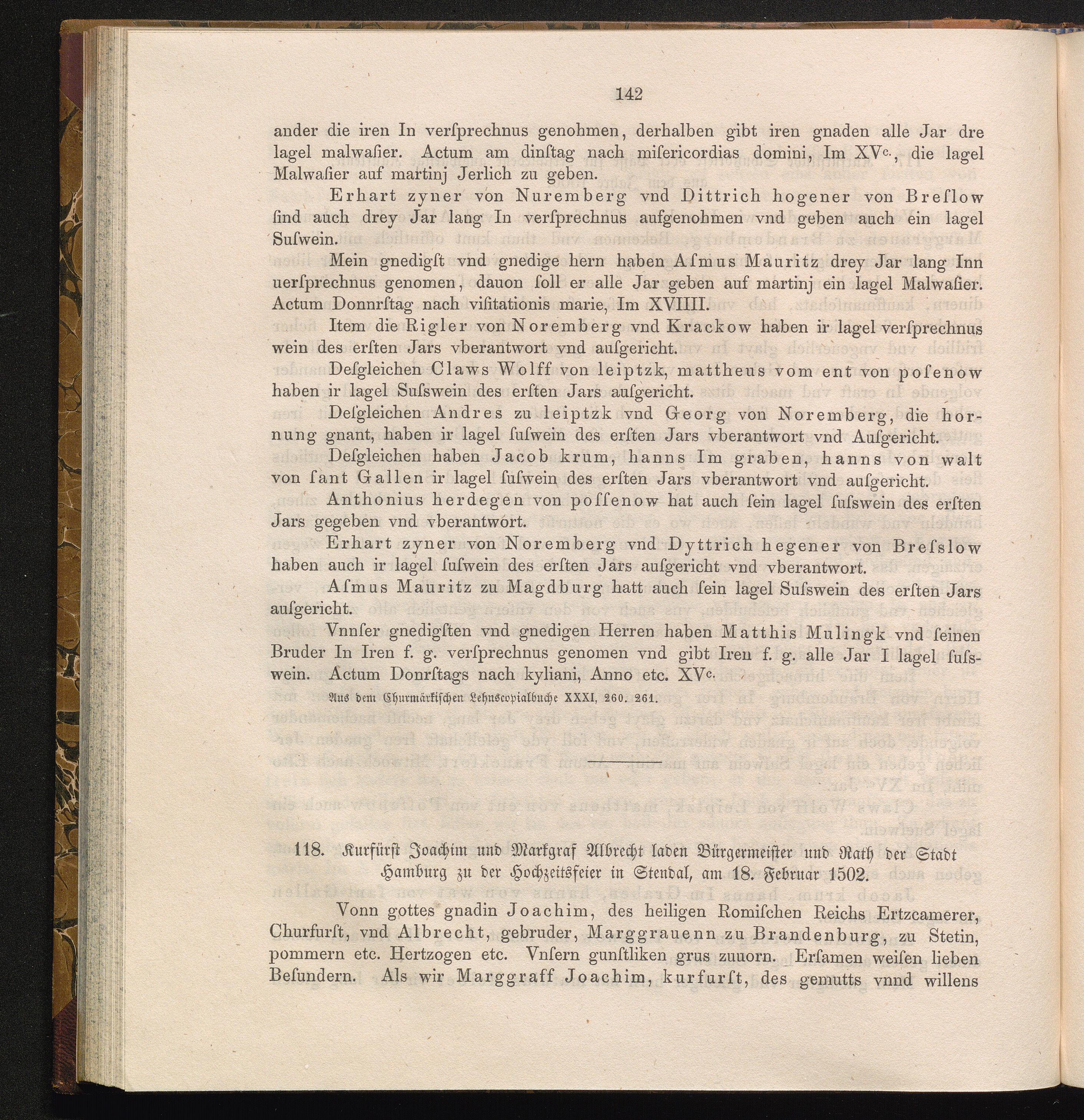 118. Kurfürst Joachim und Markgraf Albrecht laden Bürgermeister und Rath der Stadt[...]