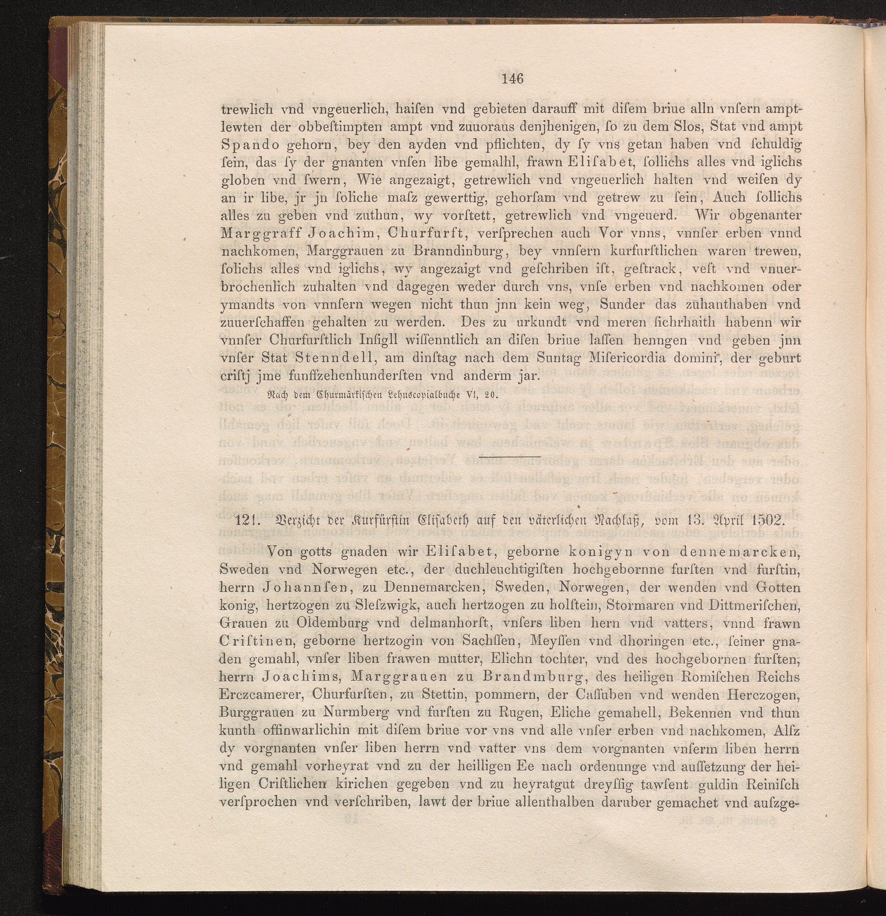 121. Verzicht der Kurfürstin Elisabeth auf den väterlichen Nachlaß, vom 13. April[...]