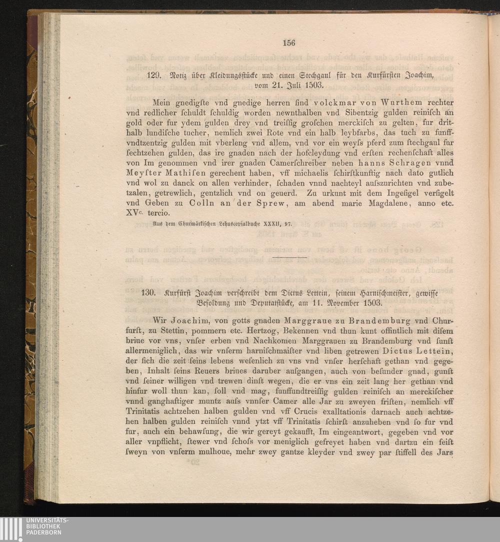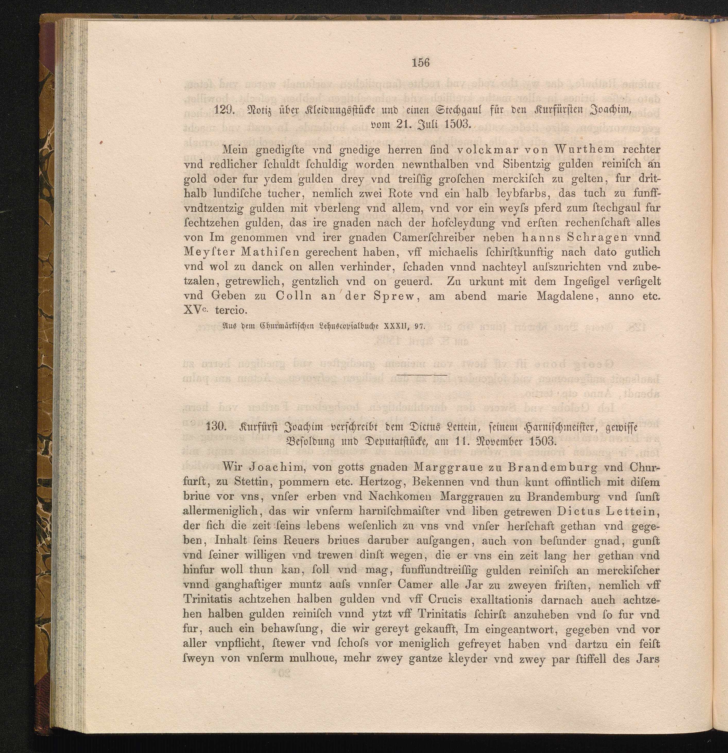 129. Notiz über Kleidungsstücke und einen Stechgaul für den Kurfürsten Joachim, vom[...]