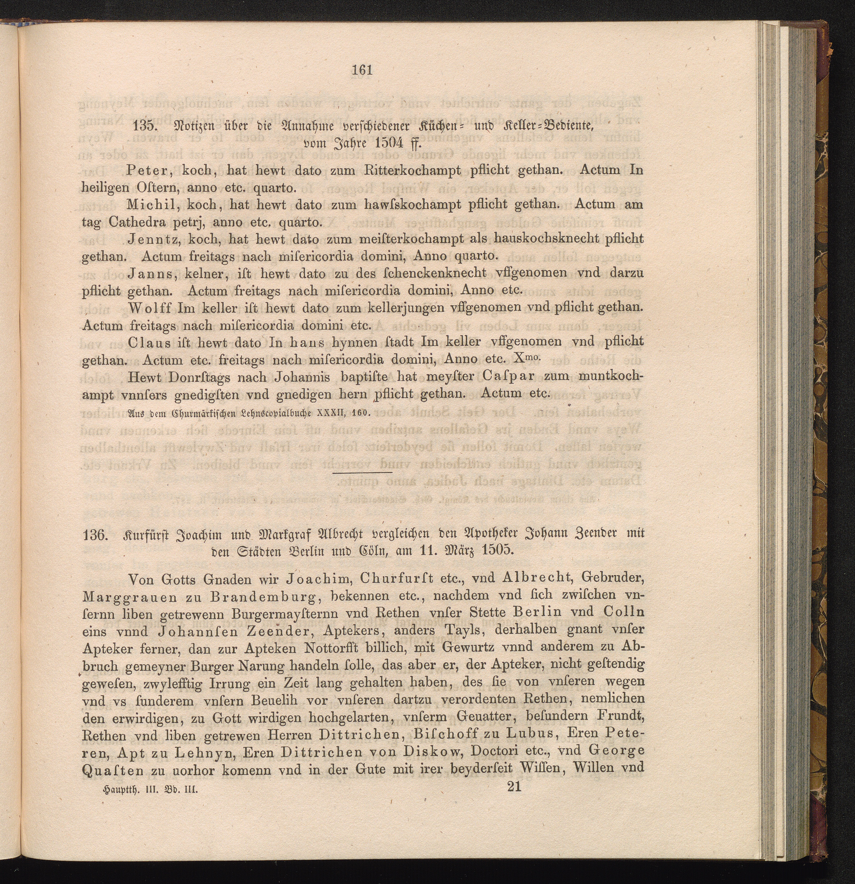 135. Notizen über die Annahme verschiedener Küchen- und Keller-Bediente, vom Jahre[...]