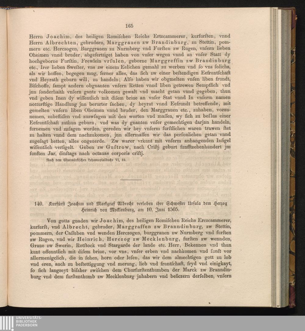 140. Kurfürst Joachim und Markgraf Albrecht verloben ihre Schwester Ursula dem Herzog[...]